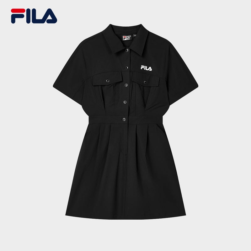FILA FUSION INLINE WORKWEAR STREET SURFER Women Short Sleeve T-shirt [ 2-piece top ] (White / Black)
