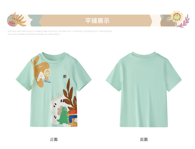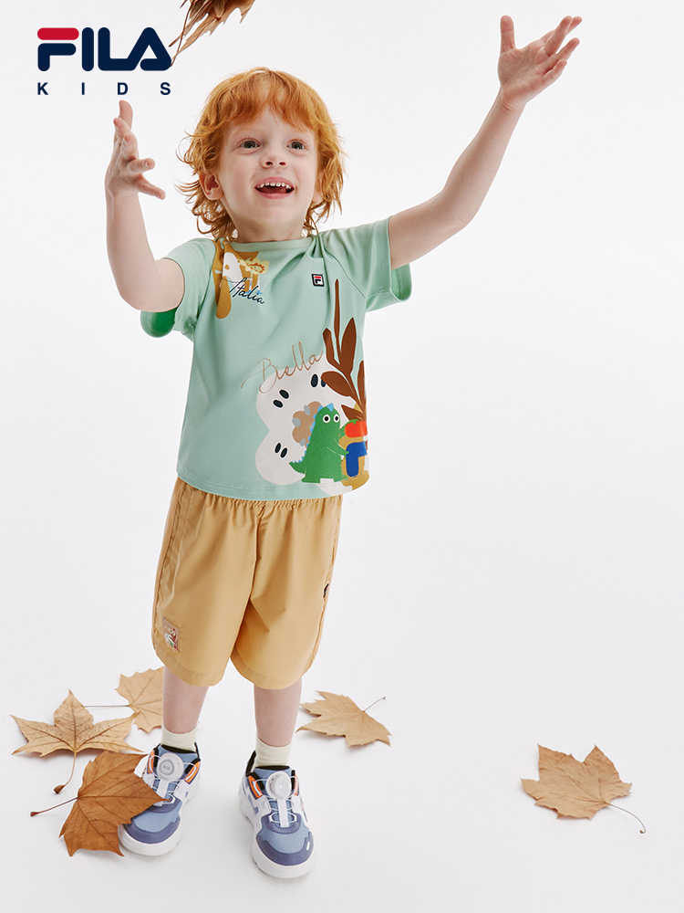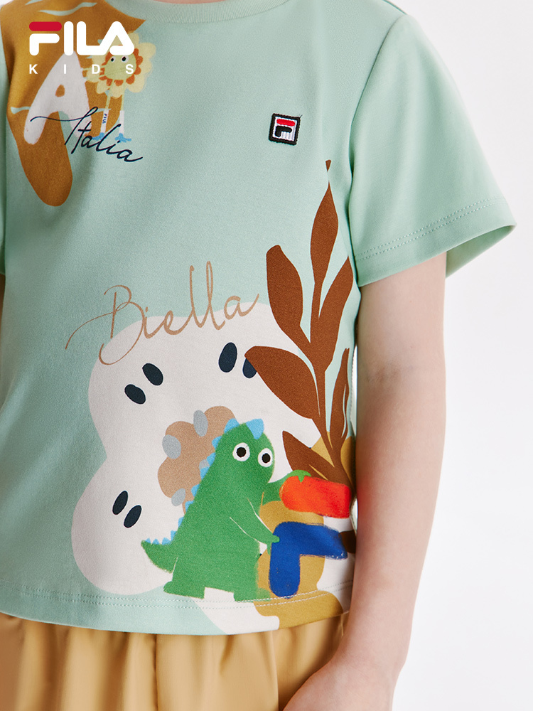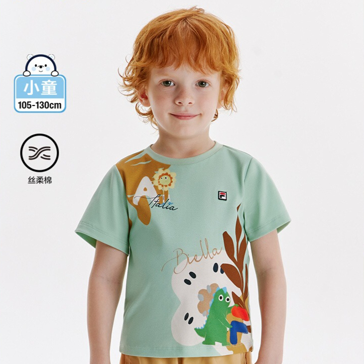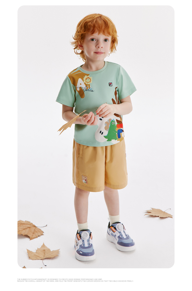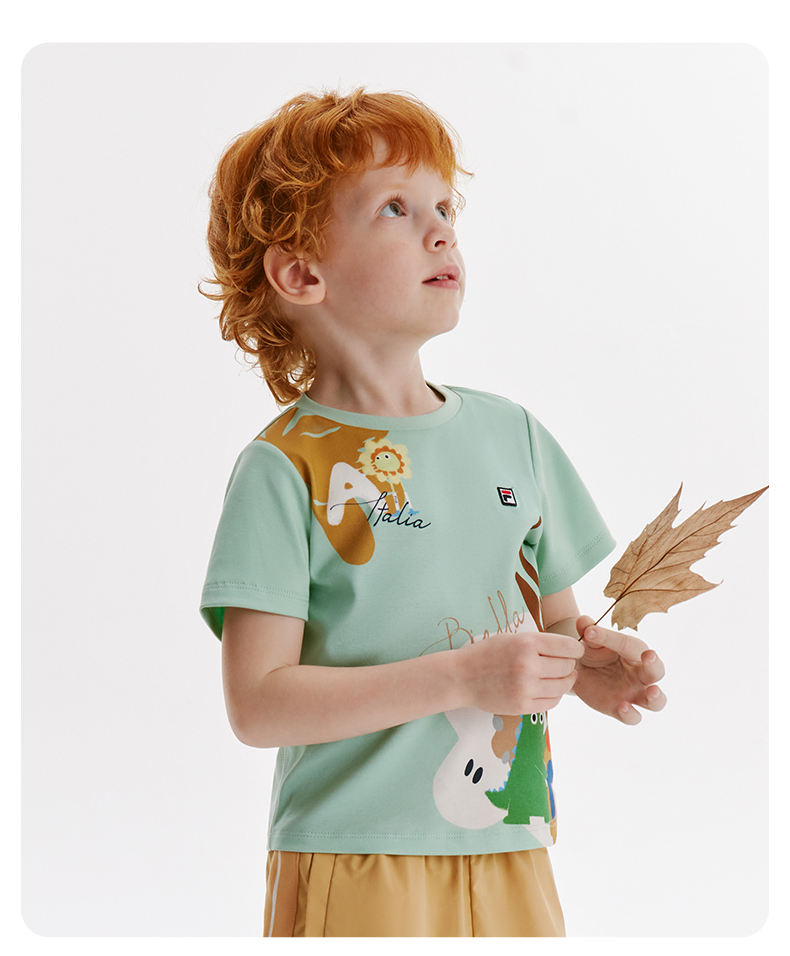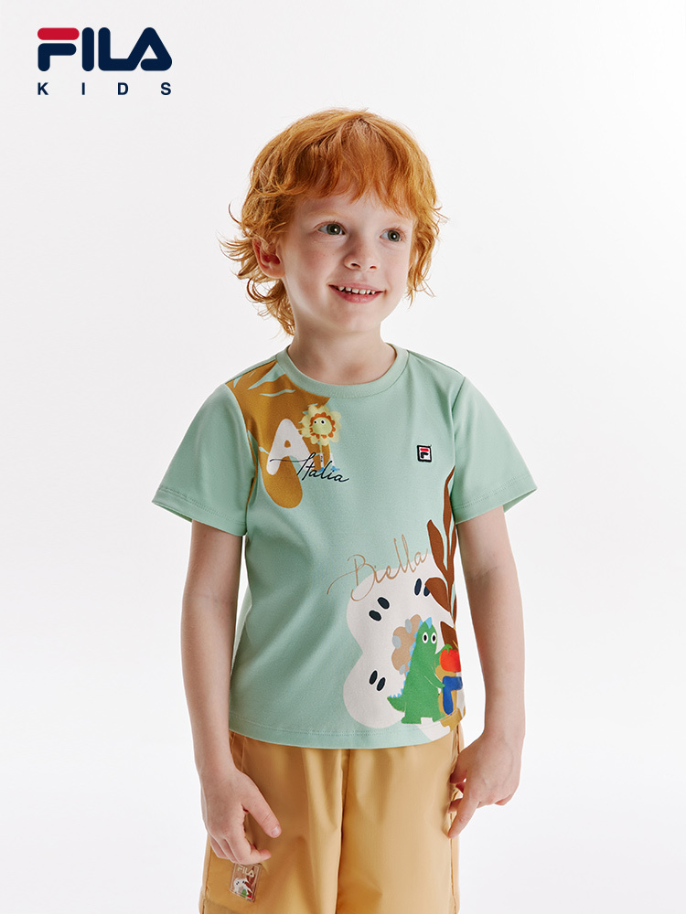 (105 - 130cm) FILA KIDS WHITE LINE Boys Short Sleeve T-Shirt in Green