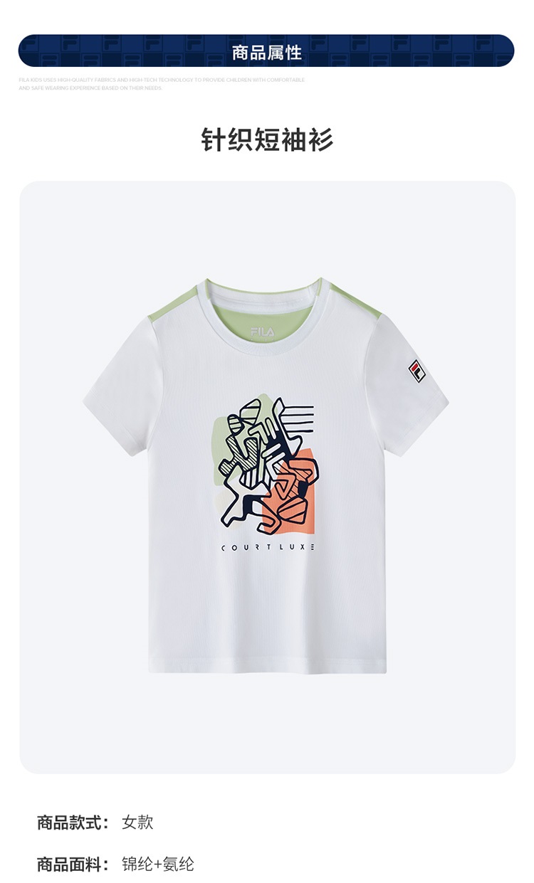 (105-130cm) FILA KIDS WHITE LINE Girl's Short Sleeve T-shirt in White