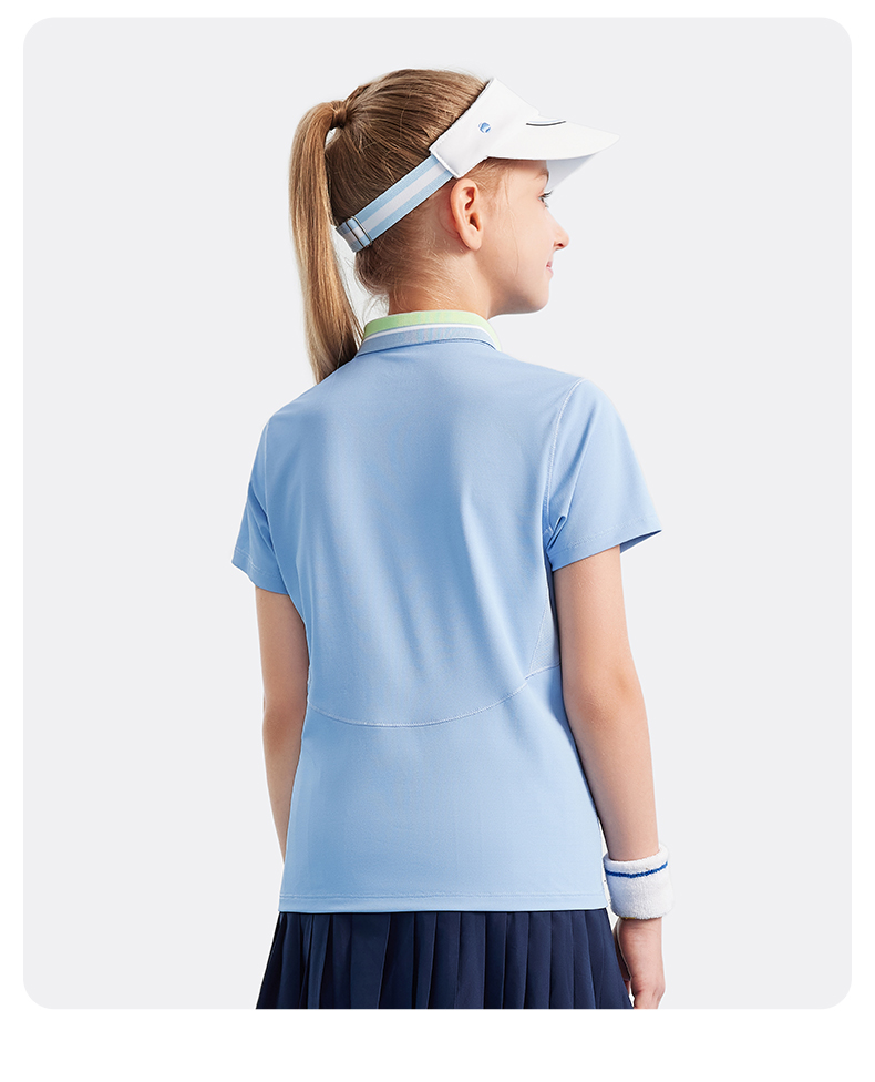 (130 - 165cm) FILA KIDS Girl's PERFORMANCE TENNIS Short Sleeve Polo T-Shirt in Light Blue