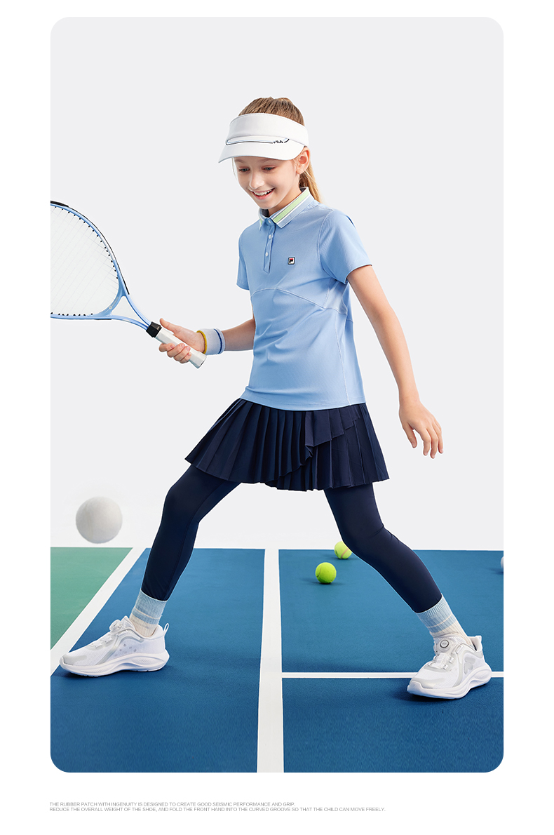 Product: (130 - 165cm) FILA KIDS Girl's PERFORMANCE TENNIS Short Sleeve Polo T-Shirt in Light Blue