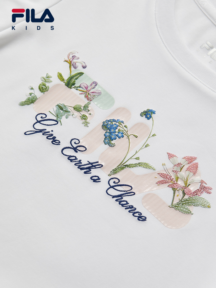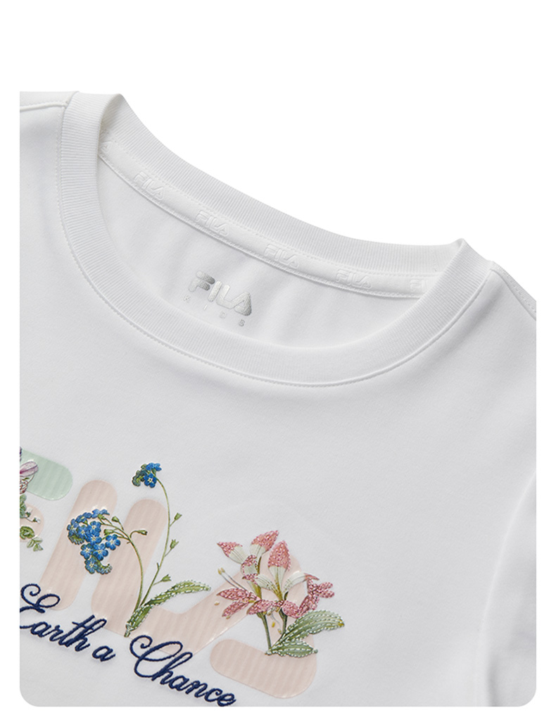 Product: (130 - 165cm) FILA KIDS WHITE LINE Girl's Short Sleeve T-Shirt in White