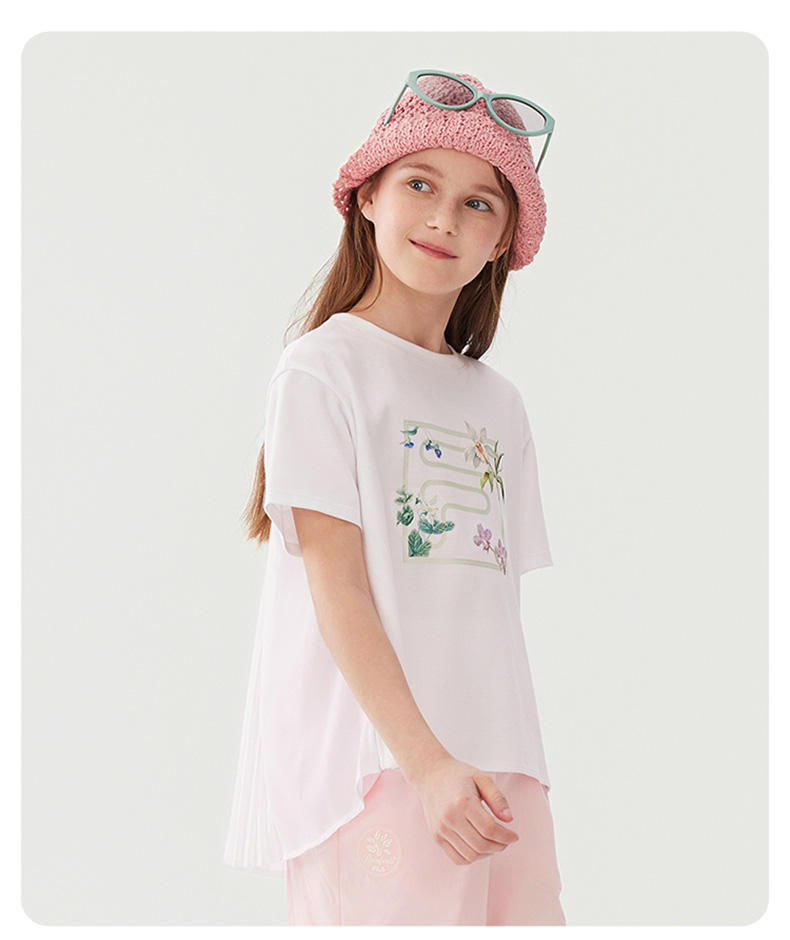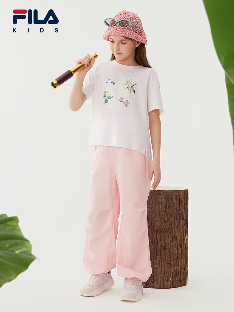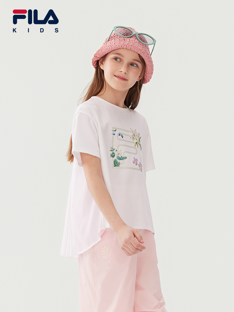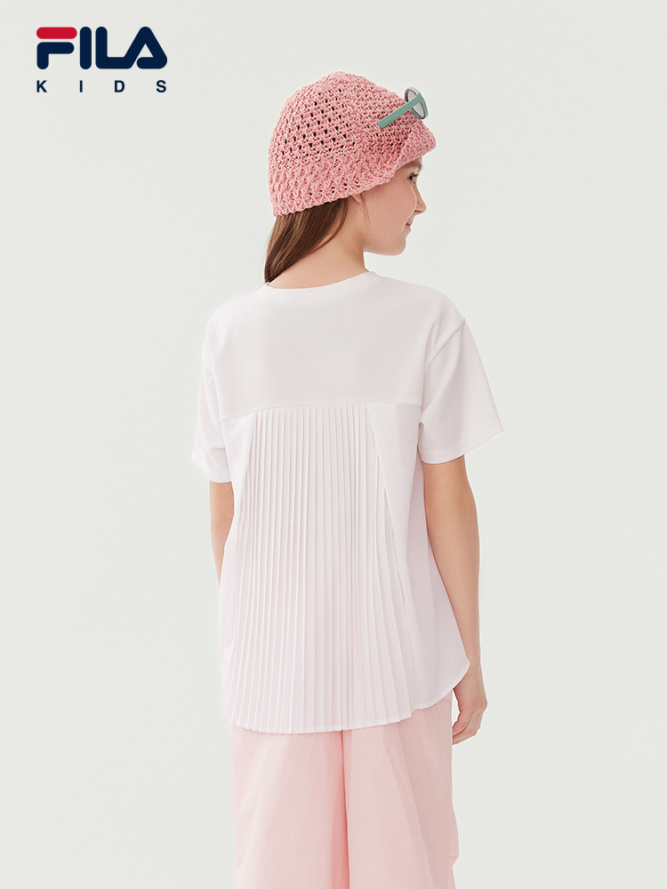 Product: (130 - 165cm) FILA KIDS WHITE LINE Girl's Short Sleeve T-Shirt in White