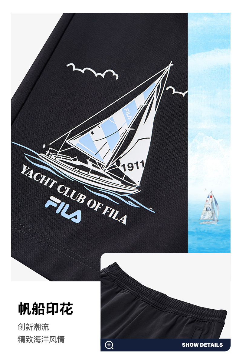 Product: (130 - 170cm) FILA KIDS x OSAMU GOODS Boys Woven 5 Inch Pants in Navy