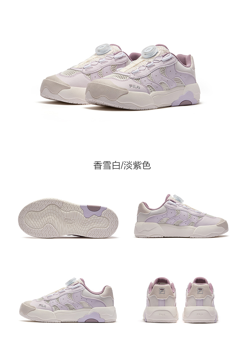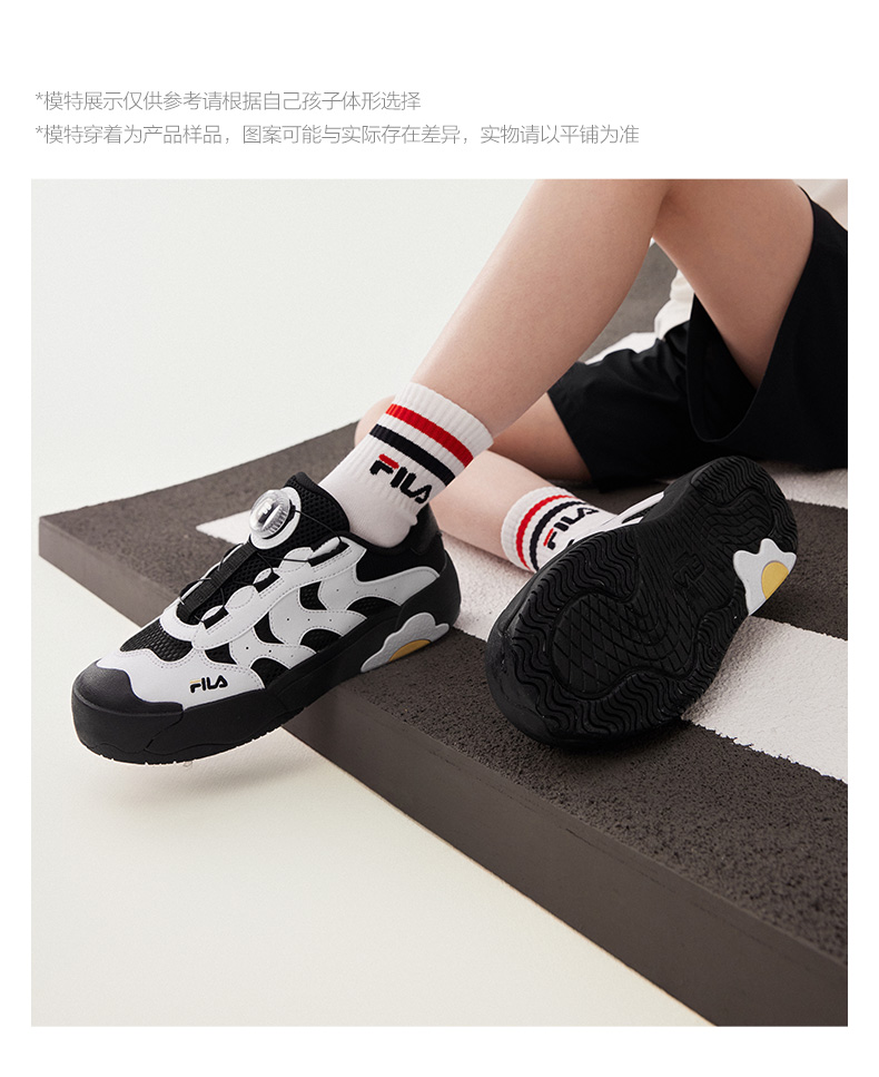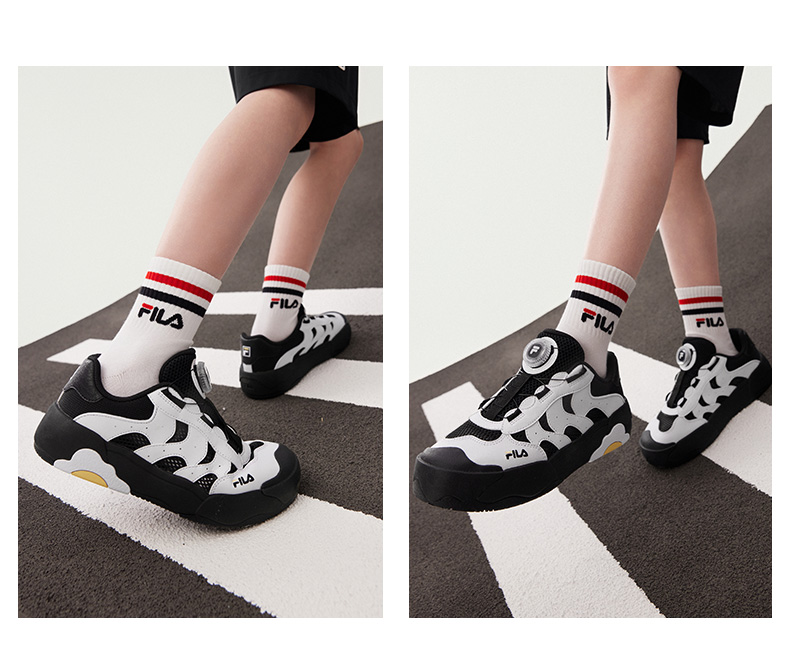 Built for easy wear and everyday comfort, these FILA kids’ sneakers combine smart design with sustainable materials. The FILA dial lacing system allows quick, precise adjustments—so kids can easily tighten or loosen their shoes without tying laces.