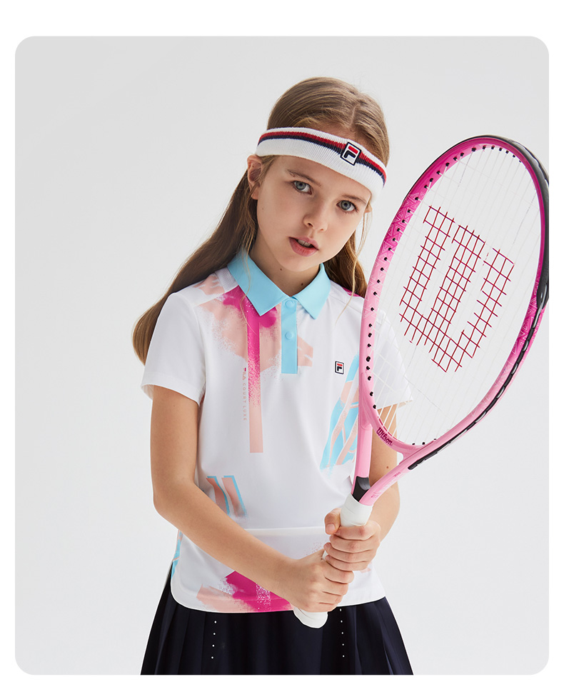 Brand: FILA KIDS Product: FILA KIDS ART IN SPORTS PERFORMANCE TENNIS Girl's Short Sleeve Polo in White SKU No. K12G423101FWT Color: White Gender: Girl's Size: 130-165cm The classic designed from FILA. A stylish short sleeves shirt Polo top. Meticulously designed for outstanding comfort.