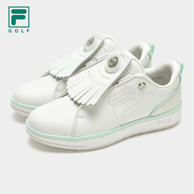 Brand: FILA CORE Product: FILA CORE ATHLETICS GF 1911 TRAINER Women Sneakers in White SKU No. A12W441705FBB Color: White Gender: Women Golf 1911 Trainers is a pair of soft spike Golf shoes by FILA with the patented BOA knob tie. The anti-sand structure of the tongue helps to reduce the entry of sand into shoes. A classic, minimalist yet versatile pair of shoes.