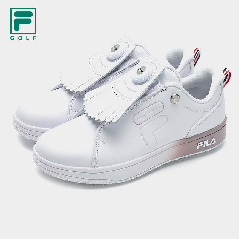Golf 1911 Trainers is a pair of soft spike Golf shoes by FILA with the patented BOA knob tie. The anti-sand structure of the tongue helps to reduce the entry of sand into shoes. A classic, minimalist yet versatile pair of shoes.