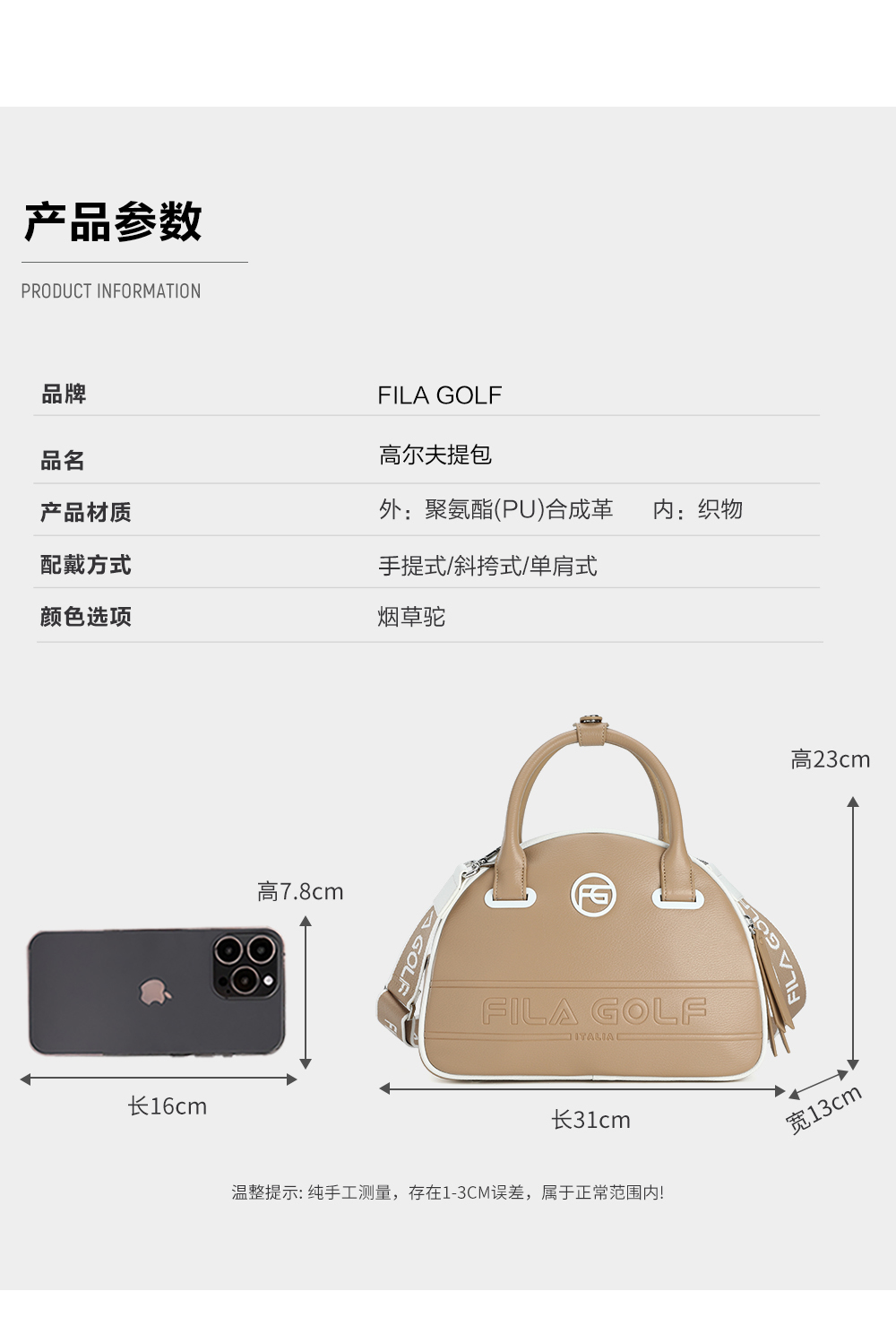 Brand: FILA CORE Product: FILA CORE ATHLETICS GOLF ACC Women HandBag in Light Khaki SKU No. A13W525164FLK Color: Light Khaki Gender: Women