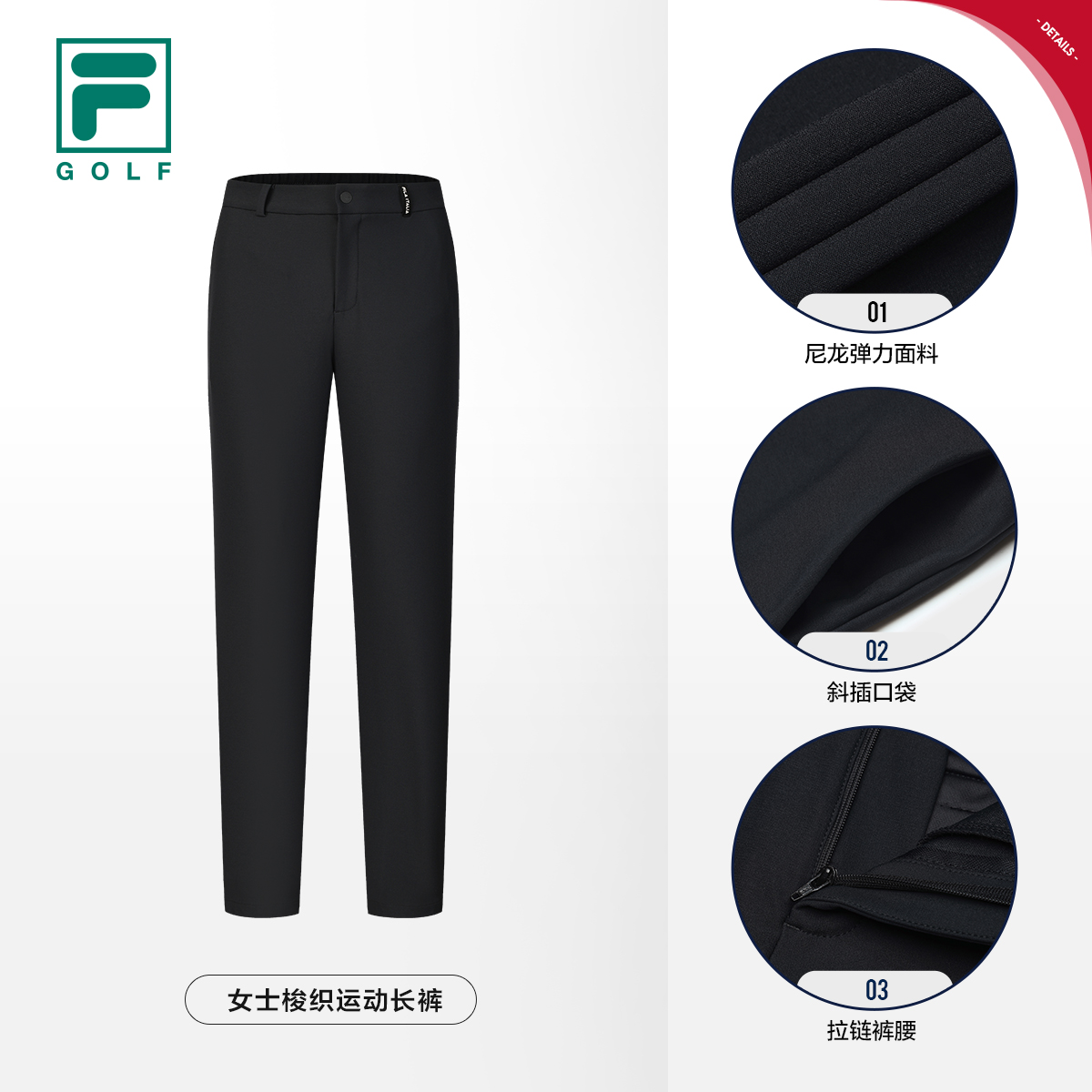 Brand: FILA CORE Product: FILA CORE ATHLETICS GOLF BTB LUXURY CLASISSANCE Women Woven Pants in Black SKU No. A11W515804FBK Color: Black Gender: Women Timeless elegance evokes a classic continuation of the style, with a sense of sophistication and luxury. This collection offers classic timeless pieces that are suitable for wearing on and off the golf course