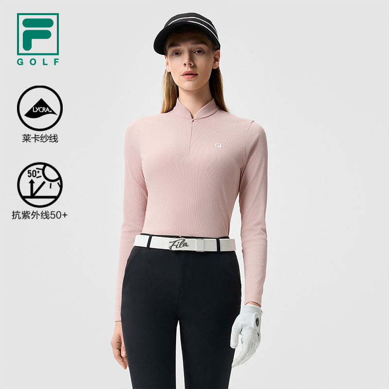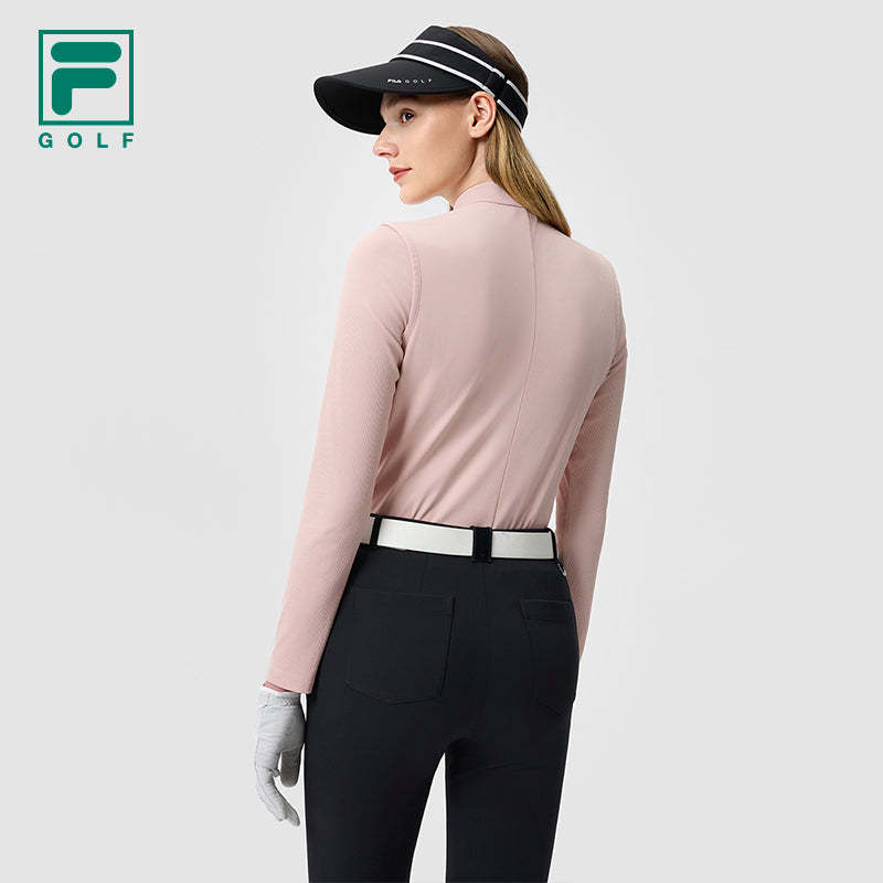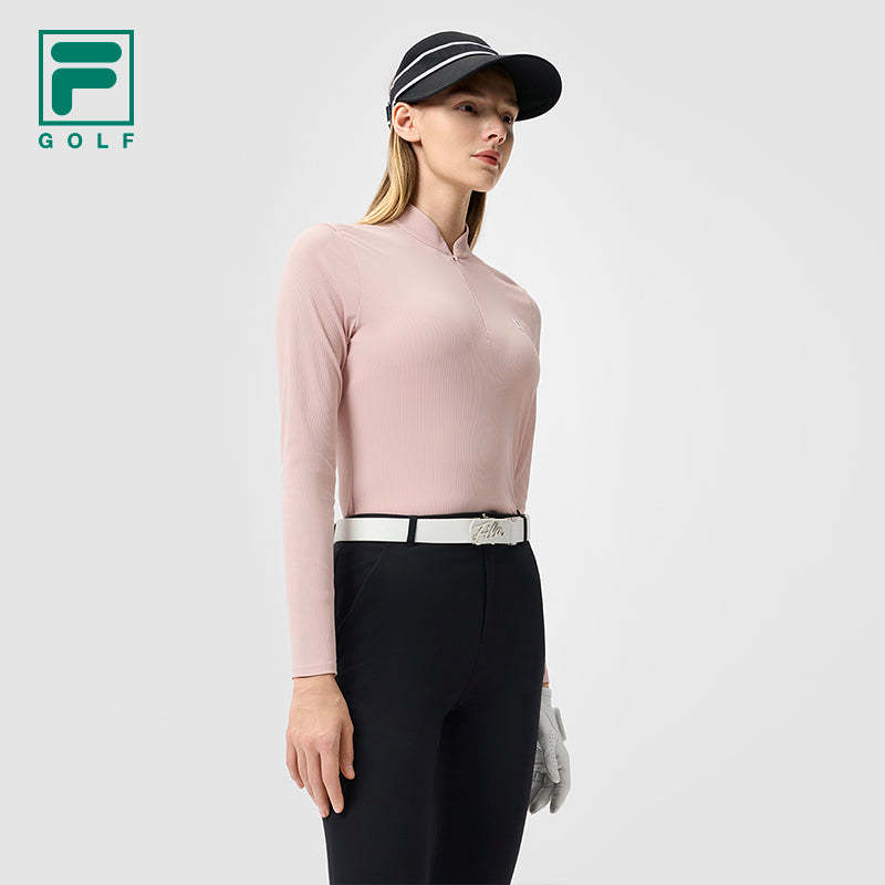 Brand: FILA CORE Product: FILA CORE ATHLETICS GOLF MODERN FUSHION Women Long Sleeve Top in Pink SKU No. A11W515202FPK Color: Pink Gender: Women The inspiration for this collection comes from the golf spa resort villas designed by renowned architect Zaha Hadid, specifically her designs featuring "rocks" and "shells". This collection blends functional modern aesthetics with the fusion of fashionable design, innovative materials, and advanced technologies, embodying the harmony between architecture and fashion.