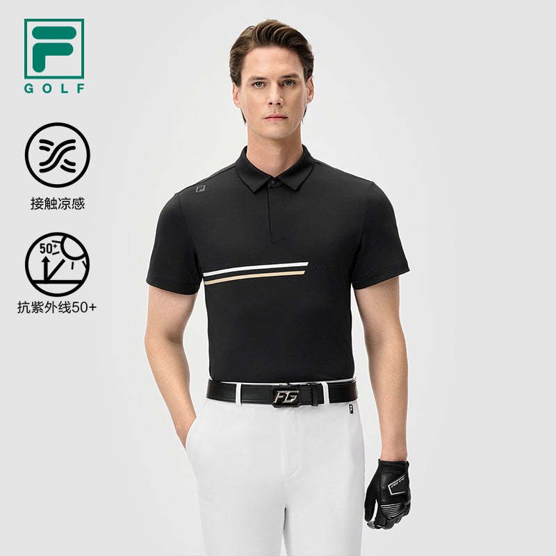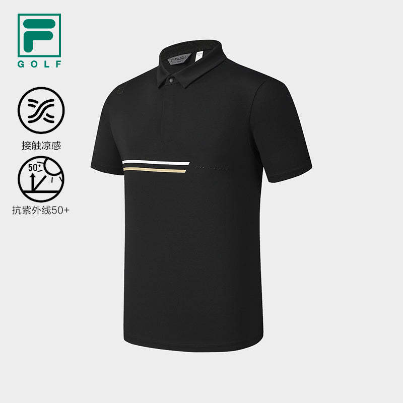 Brand: FILA CORE Product: FILA CORE ATHLETICS GOLF STATELY FLORAL Men Polo T-shirt in Black SKU No. A11M525144FBK Color: Black Gender: Men "Solemn Floral Language" evokes a modern, sophisticated style, radiating refinement and luxury. This collection transcends trends, offering timeless, elegant pieces that are perfect for both on and off the golf course. The design is minimalist and clean, ensuring an elegant presence wherever you go.