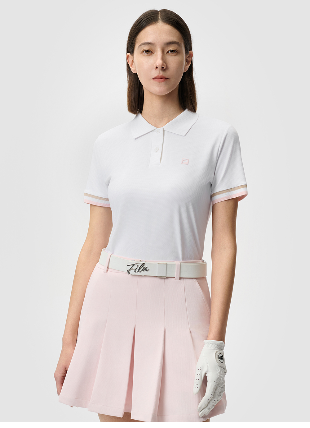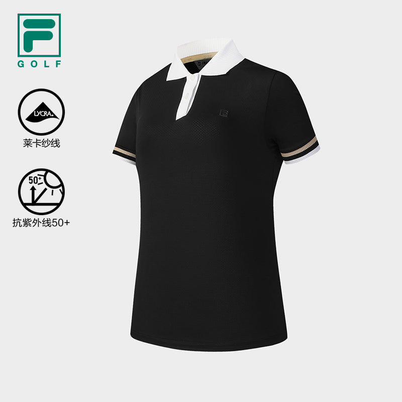Brand: FILA CORE Product: FILA CORE ATHLETICS GOLF STATELY FLORAL Women Polo T-shirt in Black SKU No. A11W525103FBK Color: Black Gender: Women "Solemn Floral Language" evokes a modern, sophisticated style, radiating refinement and luxury. This collection transcends trends, offering timeless, elegant pieces that are perfect for both on and off the golf course. The design is minimalist and clean, ensuring an elegant presence wherever you go.