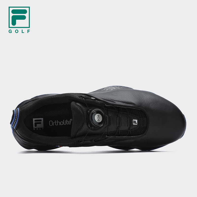 Brand: FILA CORE Product: FILA CORE ATHLETICS GOLF VELOCITY Men Sneakers in Black SKU No. A12M521713FBK Color: Black Gender: Men VELOCITYis a pair of golf shoes with BOA® system ensures precise, secure fit in 3 seconds with 0.1mm accuracy. - eVent waterproofing from a top U.S. outdoor fabric brand — blocks rain effectively. - Vibram® Gold outsole with golf-specific tread for superior traction. - Anti-sand tongue construction and engineered torsion resistance for secure footing. - FILA Soffio, a lightweight cushion tech and MEGAGRIP provide high grip on wet/dry surfaces. - TRACTION LUG with shark-tooth grip increases traction by 25%. - LTEBASE technology cuts base weight by 30%.