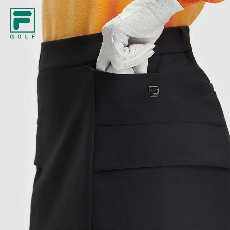Brand: FILA CORE Product: FILA CORE ATHLETICS GOLF X VERSAILLES COLLECTION Women Skorts in Black SKU No. A11W445306FBK Color: Black Gender: Women Another collection of the FILA x Versailles collection for the golf line. The main highlights of this collection are the down jackets, knit shirts and long sleeve polo tees. The series also uses 3D quilting, embossing, glossy fabrics and other forms to create a fashionable and high-end golf look.
