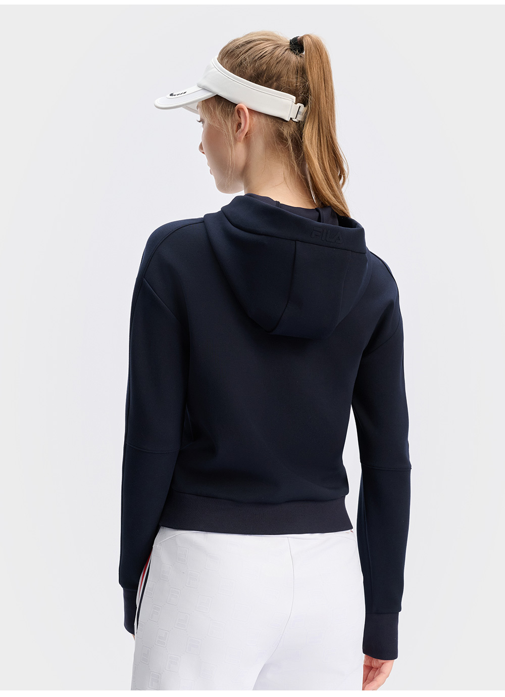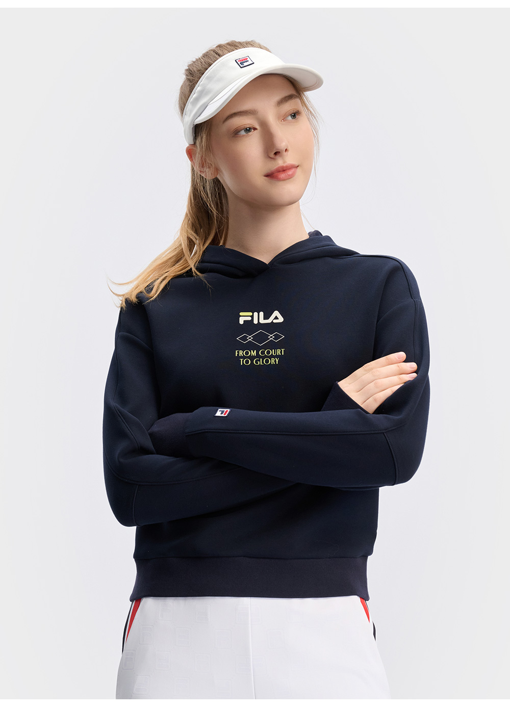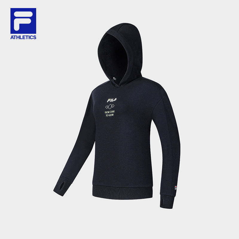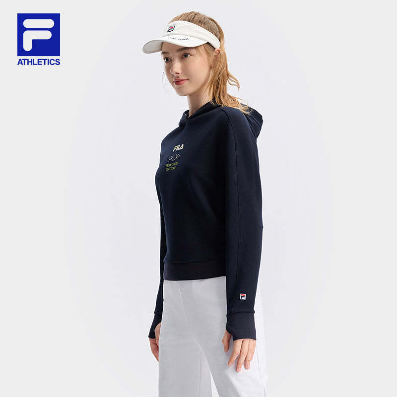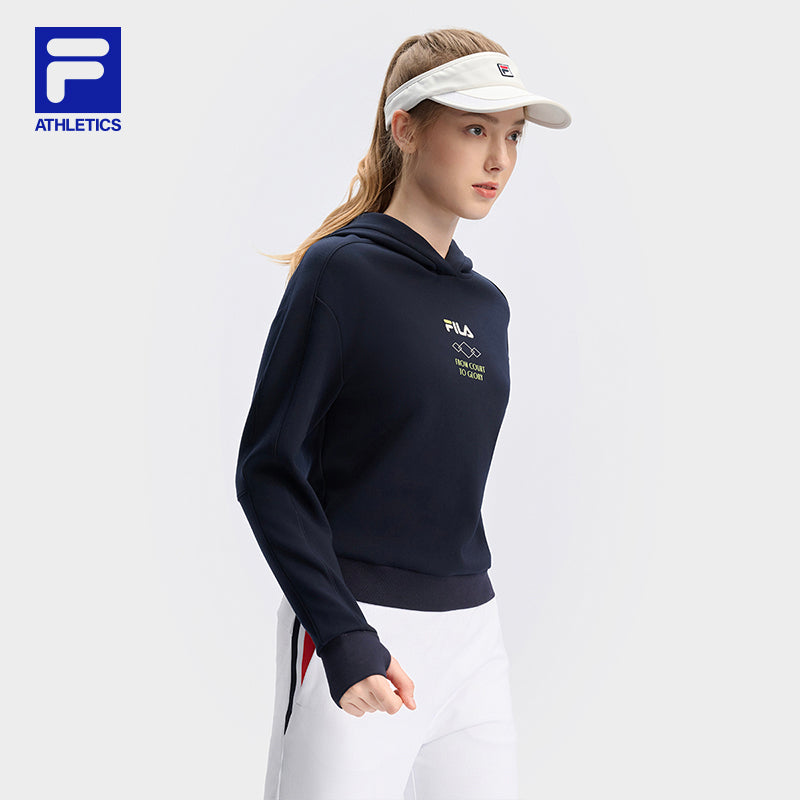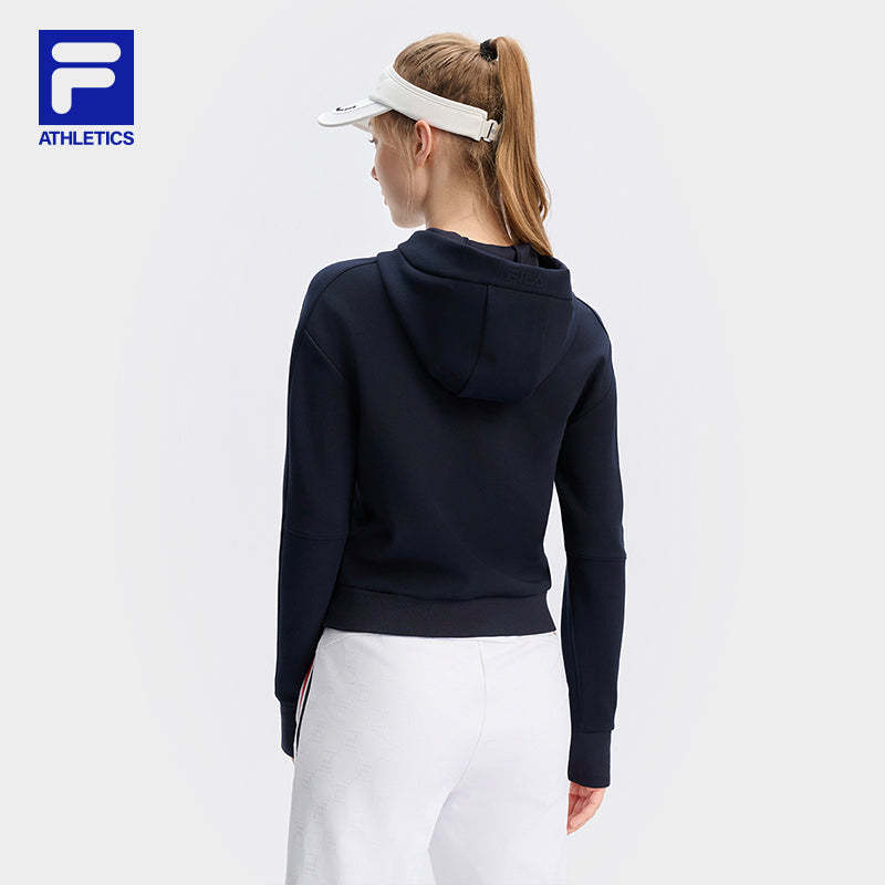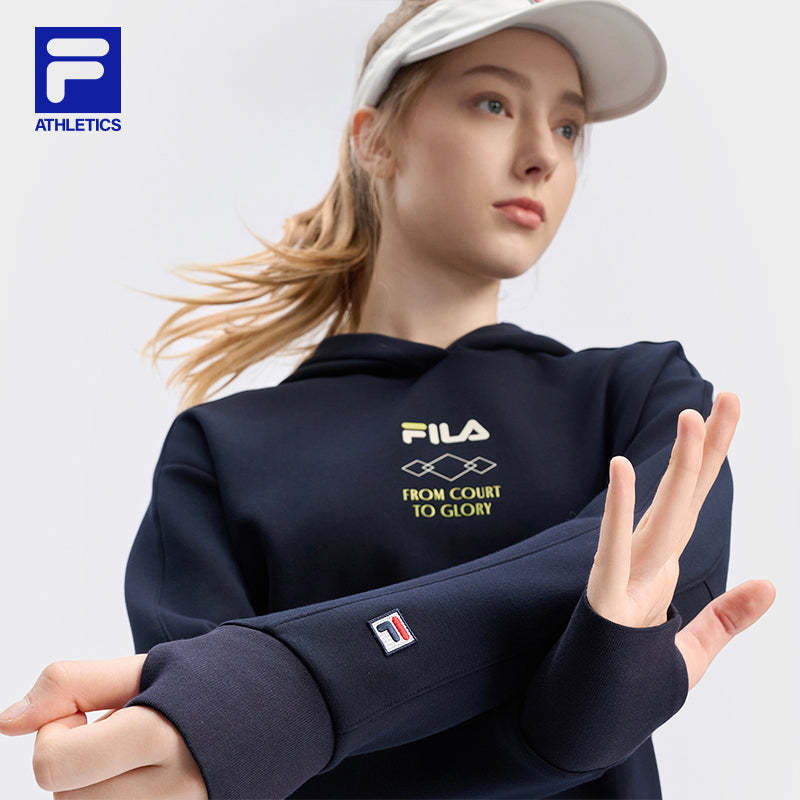 Brand: FILA CORE Product: FILA CORE ATHLETICS TENNIS APRÈS-COURT Women Hoodie in Navy SKU No. A11W443202FNV Color: Navy Gender: Women TENNIS Après-Court theme takes inspiration comes from "the roof of Europe" - the luxurious atmosphere of the resorts at the foot of Mont Blanc and the slopes of Mont Blanc as the inspiration. The performance-driven design of tennis is enhanced with elements of team uniforms, showcasing a luxurious style.