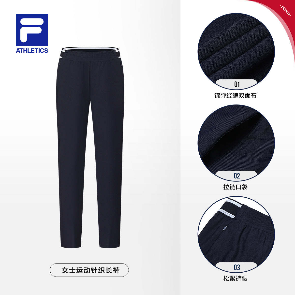 Brand: FILA CORE Product: FILA CORE ATHLETICS TENNIS PREPPY NOSTALGIA Women Knit Pants in Navy SKU No. A11W433603FNV Color: Navy Gender: Women Inspired by the tennis venue of the Paris Olympics, Roland Garros. Also the venue for the French Open. Vintage green and deep redbrowns is the themed color for this collection. The style is a classic retro FILA tennis reinvented resulting in a combination of classic and modern