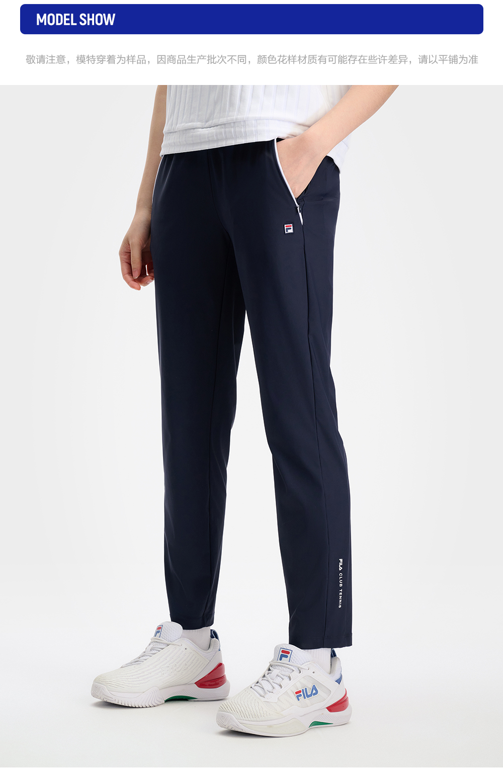 Brand: FILA CORE Product: FILA CORE ATHLETICS TENNIS1 ART IN SPORTS Women Knit Pants in Navy SKU No. A11W433605FNV Color: Navy Gender: Women