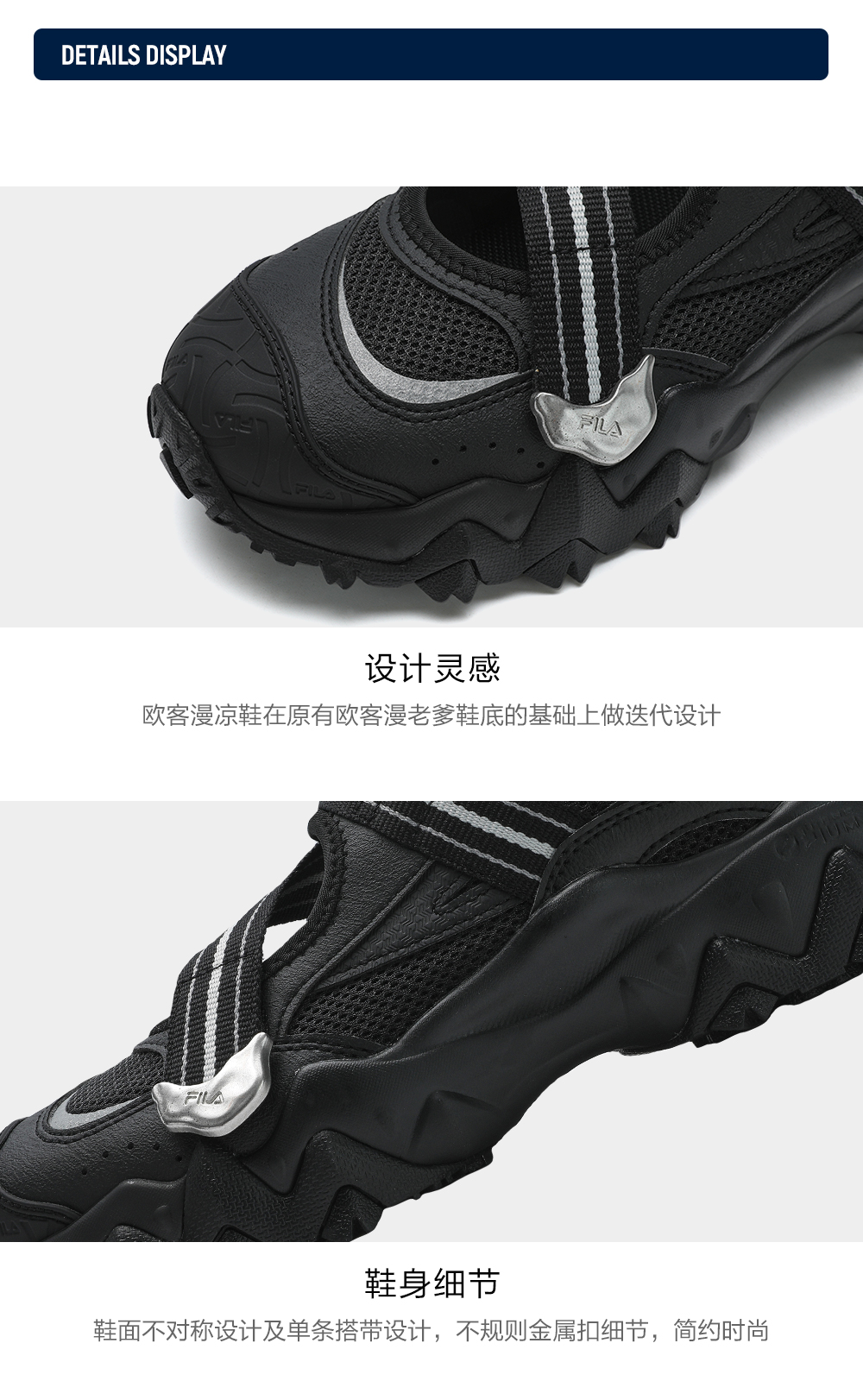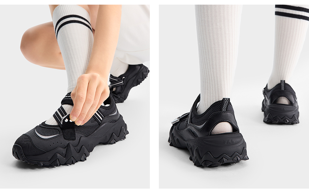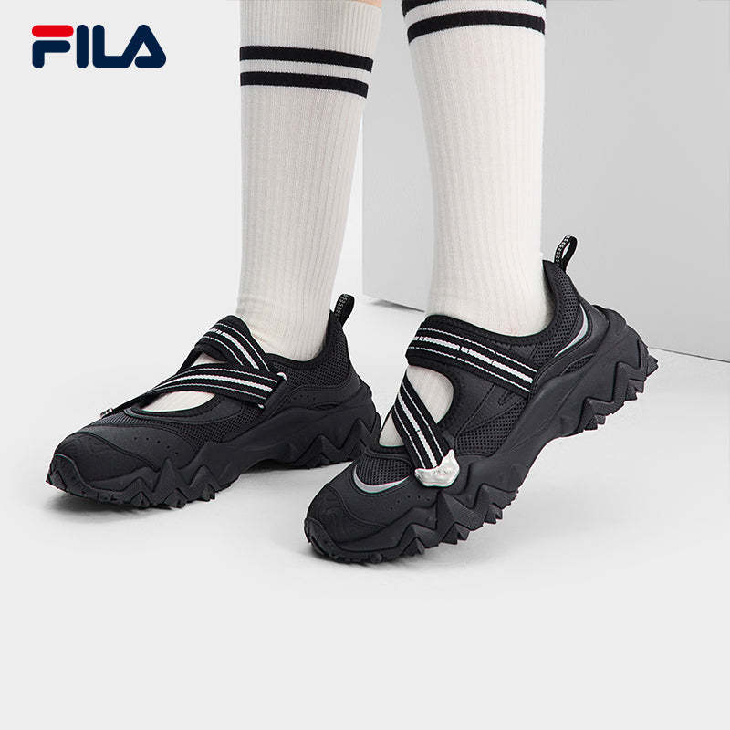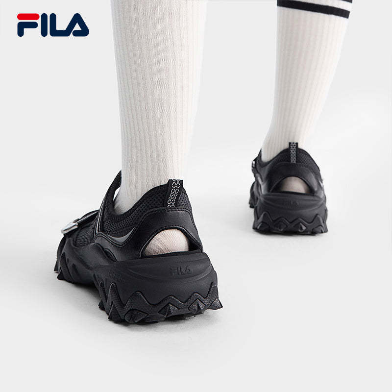 Brand: FILA CORE Product: FILA CORE FASHION OAKMONT SANDAL Women Sandals in Black SKU No. F12W521403FBK Color: Black Gender: Women The OAKMONT Sandal features irregular metal buckle designs for a bold, stylish look. TPU toe cap embossed with the brand’s monogram, adding a high-end touch. Y2K-Inspired Sole – Designed for versatility and a trend-forward aesthetic