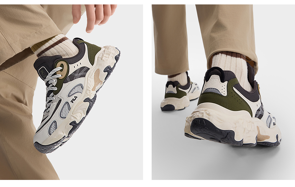 Natural outdoor inspiration drawn from hurricane-swept terrains. The organic sole textures with rubber overlays echo hurricane swirls. Embroidered wind-effect details and hollowed leather cuts mimic storm erosion. Light outdoor-ready design with slightly raised toe tip. It is the perfect match for trending gorpcore style