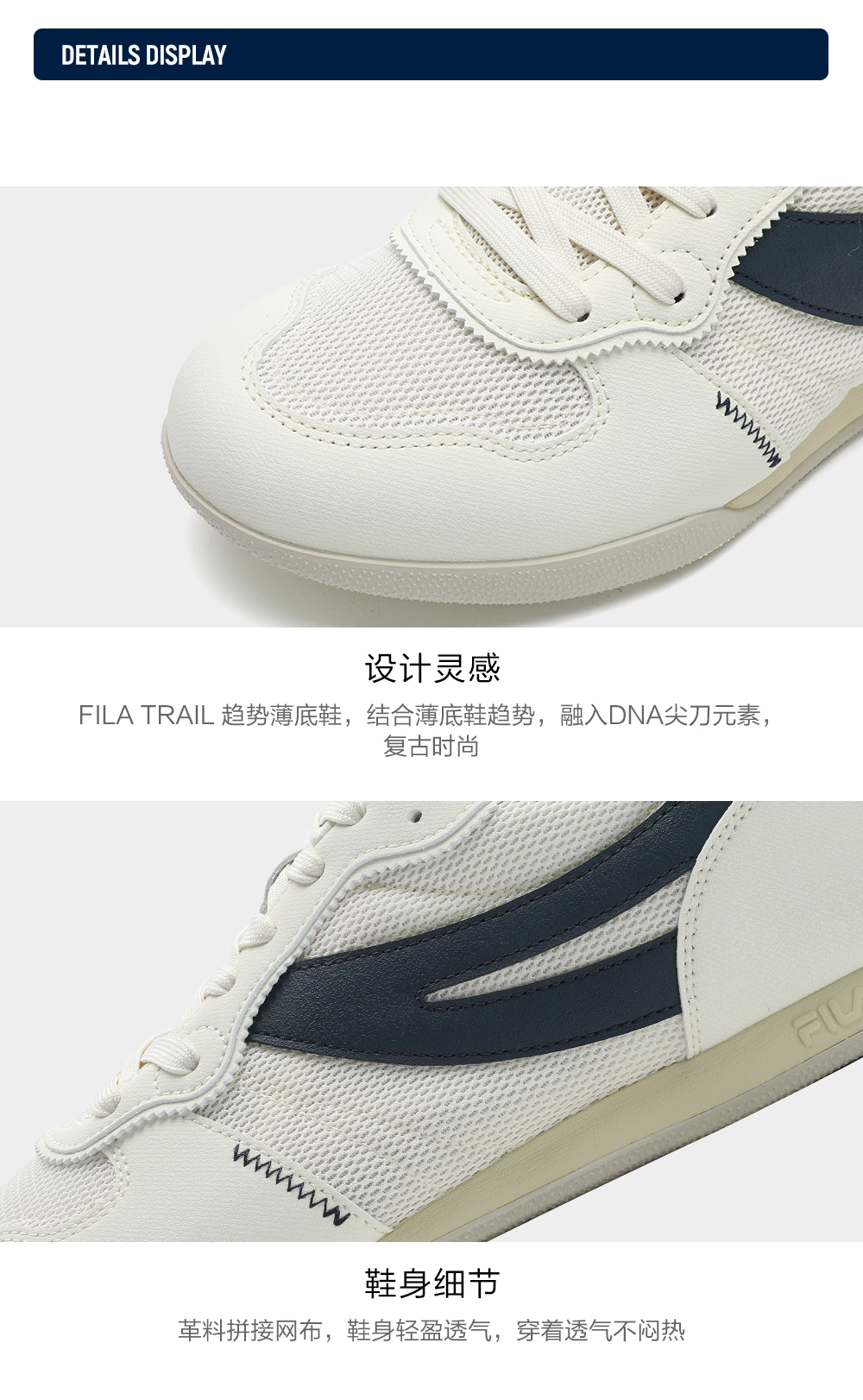 Brand: FILA CORE Product: FILA CORE FASHION TRACK Men Sneakers in White SKU No. F12M522114FAM Color: White Gender: Men 70s Italian Retro Running Style – A revamped vintage silhouette with a distinct asymmetrical toe design. Slim & Comfortable Sole – Aligns with modern thin-sole trends while maintaining comfort. Knife-Edge Outsole – Inspired by classic "blade" designs, offering a streamlined look with enhanced traction. Ultra-Light Foam Cushioning – Provides soft, supportive comfort for long-distance wear.