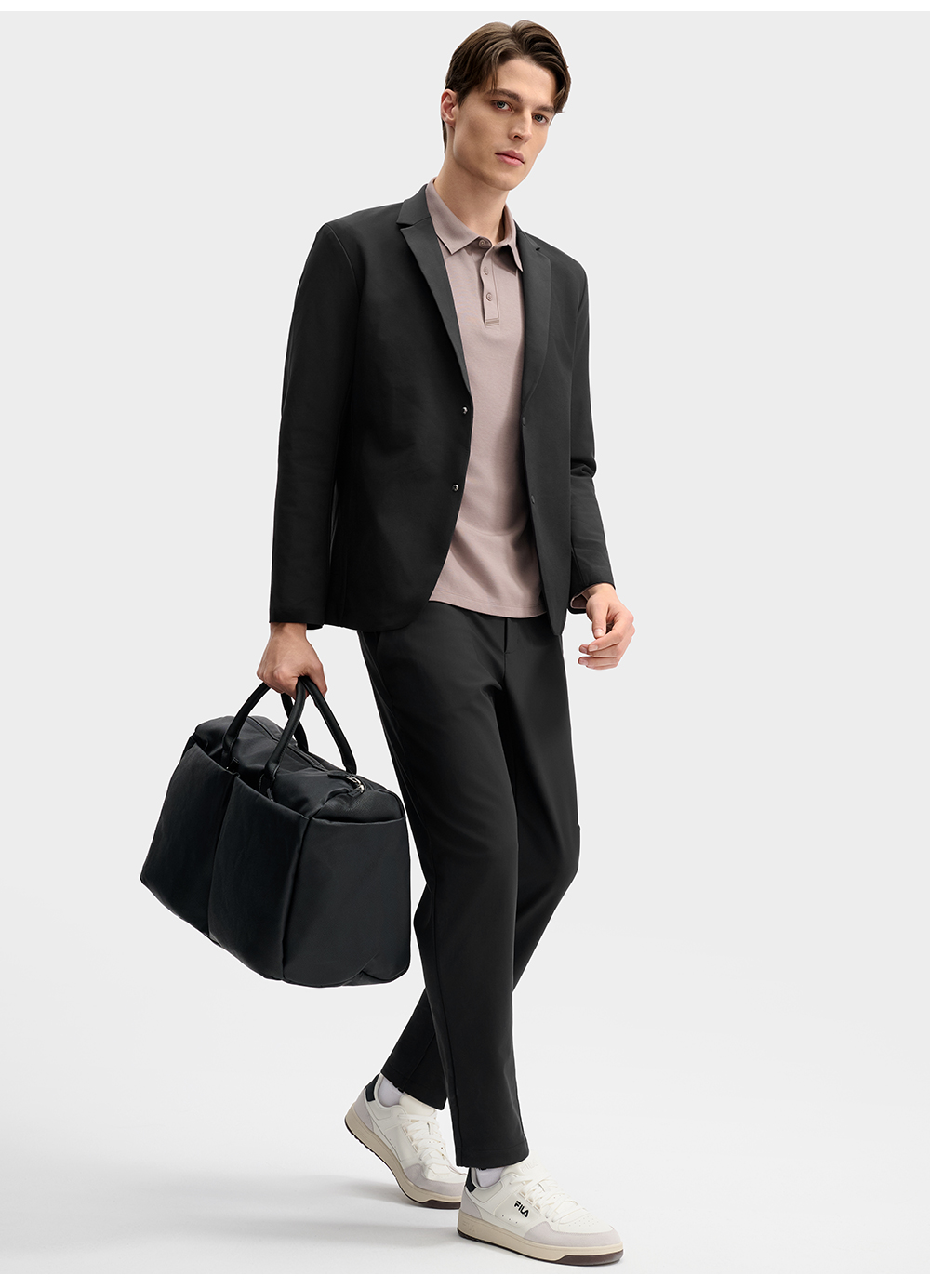 Brand: FILA CORE Product: FILA CORE LIFESTYLE BLUE QUADRILATERO AESTHETICS Men Causual Suit in Black SKU No. F11M512713FBK Color: Black Gender: Men The concept draws inspiration from Quadrilatero della Moda, the iconic commercial district in the heart of Milan, Italy, enclosed by four streets. This inspiration explores a different way of life, breaking conventions and using architecture as a medium to evoke a natural and harmonious lifestyle. This season, BLUE QUADRILATERO AESTHETICS, blends the artistry of architectural aesthetics with traditional craftsmanship to express a unique design philosophy. The color palette centers on sophisticated and elegant architectural hues, such as sage green and dusty sugar beige, with accents of toffee brown and khaki gray, delivering a sense of elevated elegance and texture.