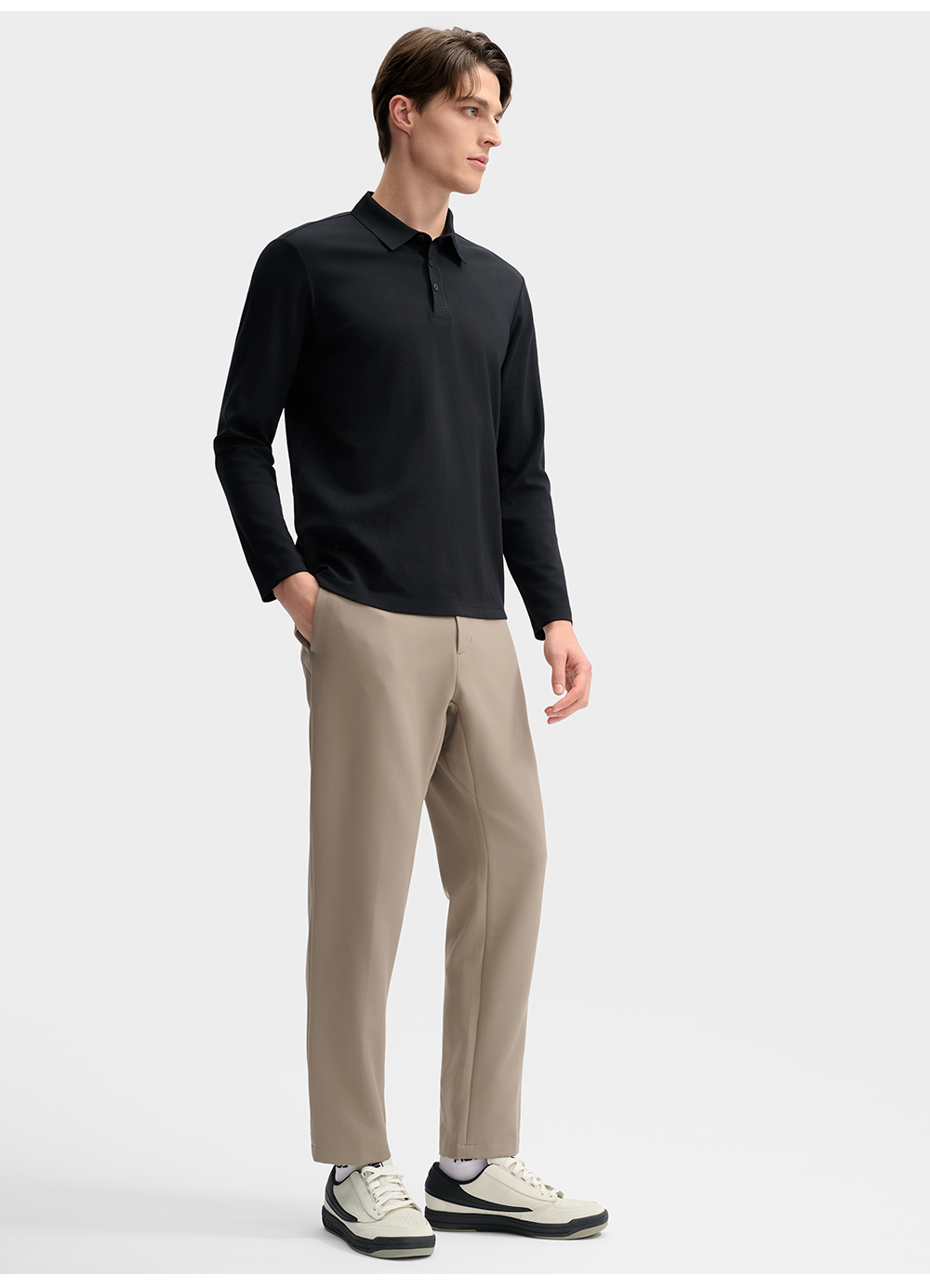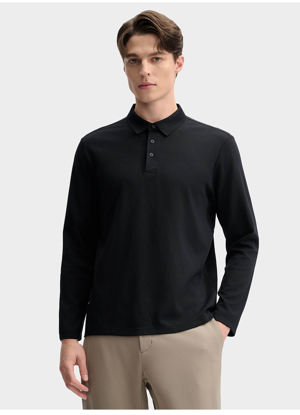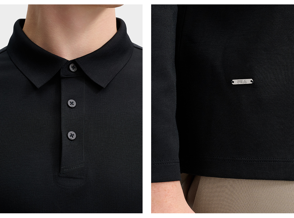 Product: FILA CORE LIFESTYLE BLUE QUADRILATERO AESTHETICS Men Long Sleeve Polo in Black/ Brown