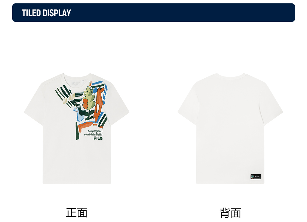 Brand: FILA CORE Product: FILA CORE LIFESTYLE HERITAGE ENDLESS SUMMER IN SICILY Men Short Sleeves T-Shirt in White SKU No. F11M528108FWT Color: White Gender: Men This season’s urban inspiration comes from Sicily, Italy—a mysterious and romantic island. Goethe once praised, “You can only find the true source of Italy’s beauty in Sicily.” Its charm lies in its rich history, culture, cuisine, and unique natural scenery. From breathtaking views to legendary films like The Godfather and novels like The Sicilian, this beautiful island is steeped in storytelling. This drop explores Sicilian food, ceramics, and other elements through diverse patterns and text, using craft techniques and color palettes to evoke a relaxed vacation vibe.