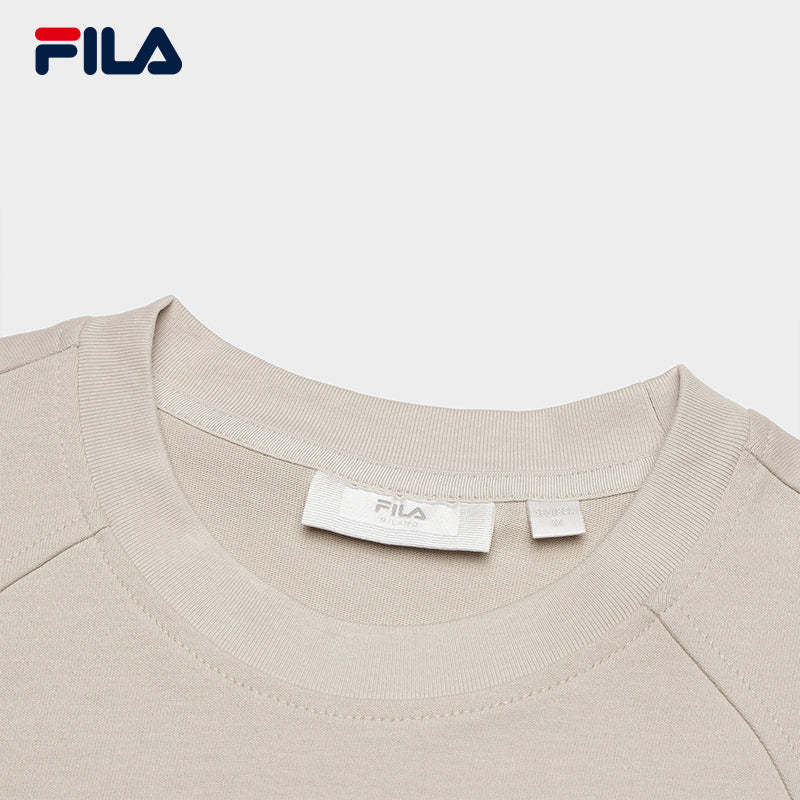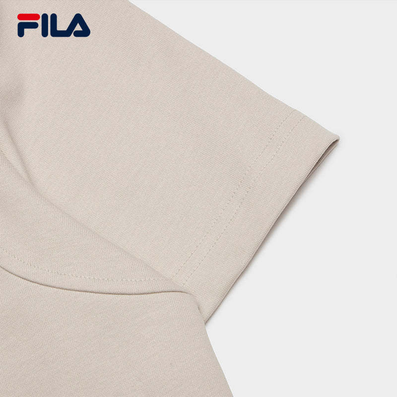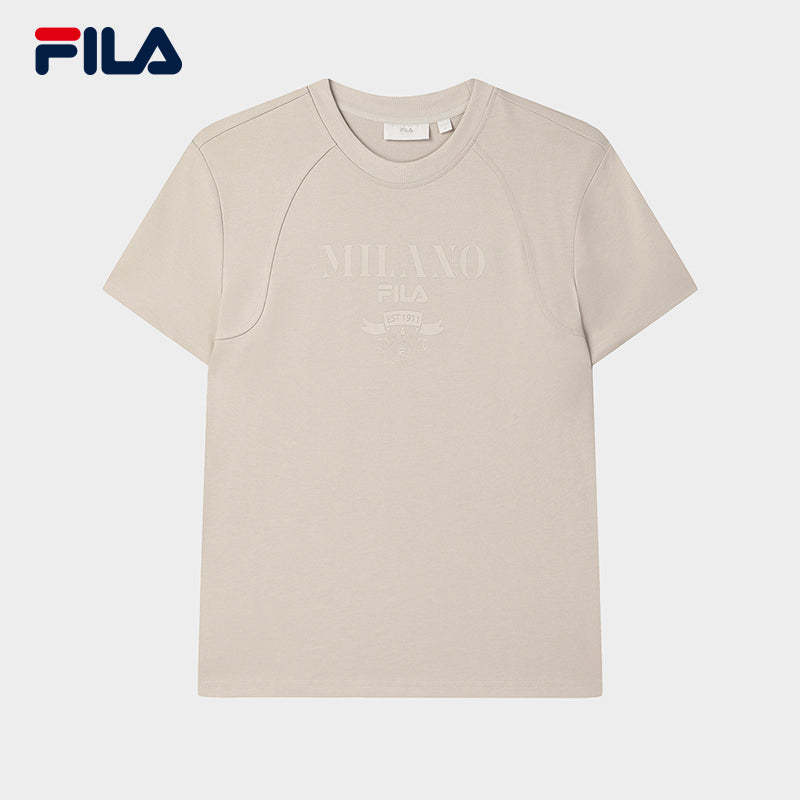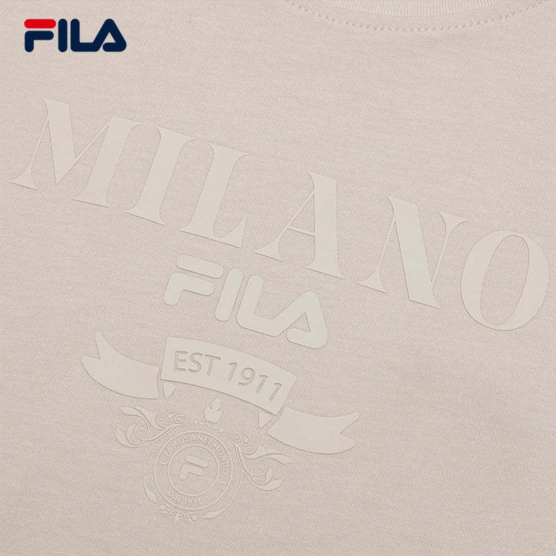 Brand: FILA CORE Product: FILA CORE LIFESTYLE MILANO STROLLING MILAN Women Short Sleeves T-Shirt in Light Khaki SKU No. F11W515103FLK Color: Light Khaki Gender: Women Strolling Milan Collection is inspired by the low-saturation pale yellow of a Milan sunset as the key color, complemented by refined gray and earth tones. The design style is minimalistic and clean, combined with intricate craftsmanship in patterns to create a sophisticated atmosphere.