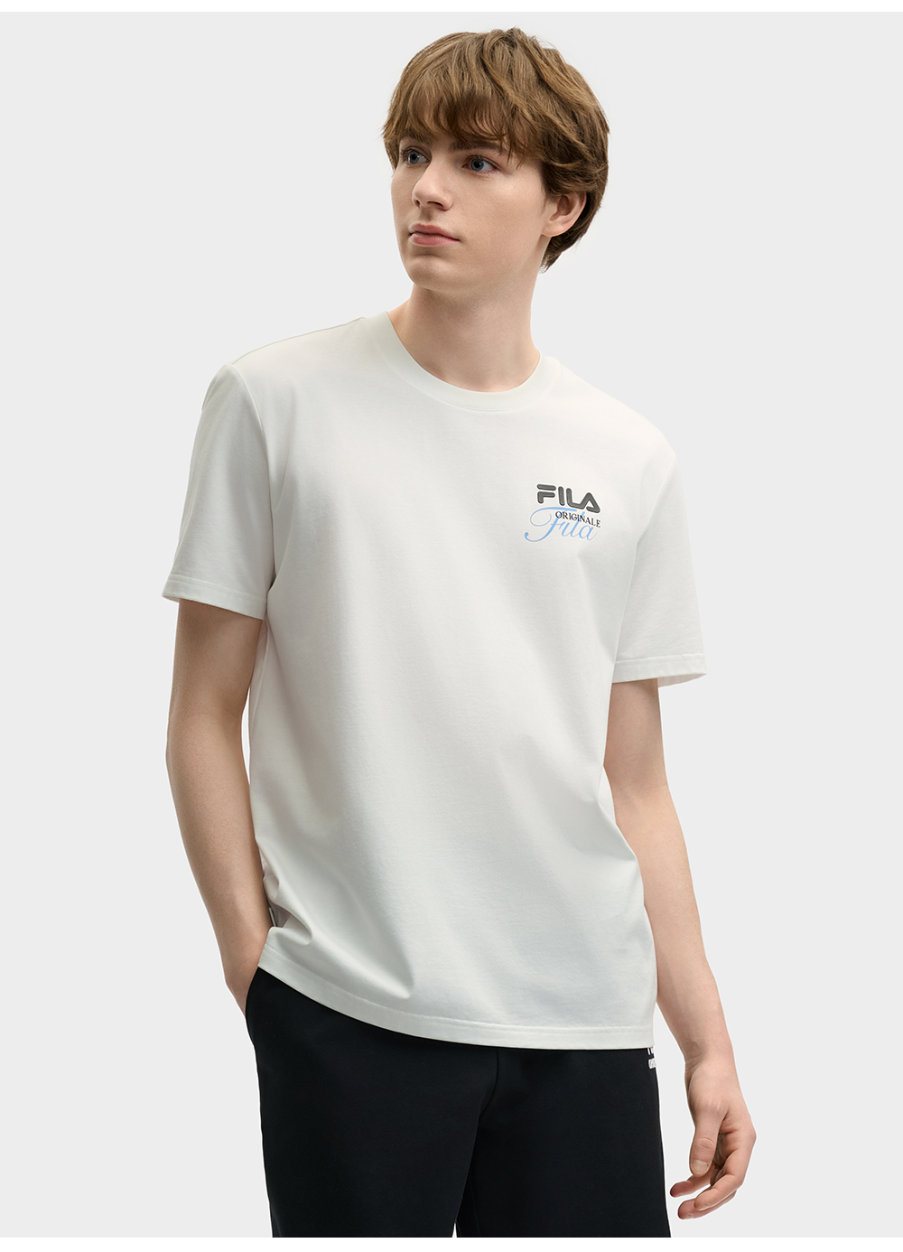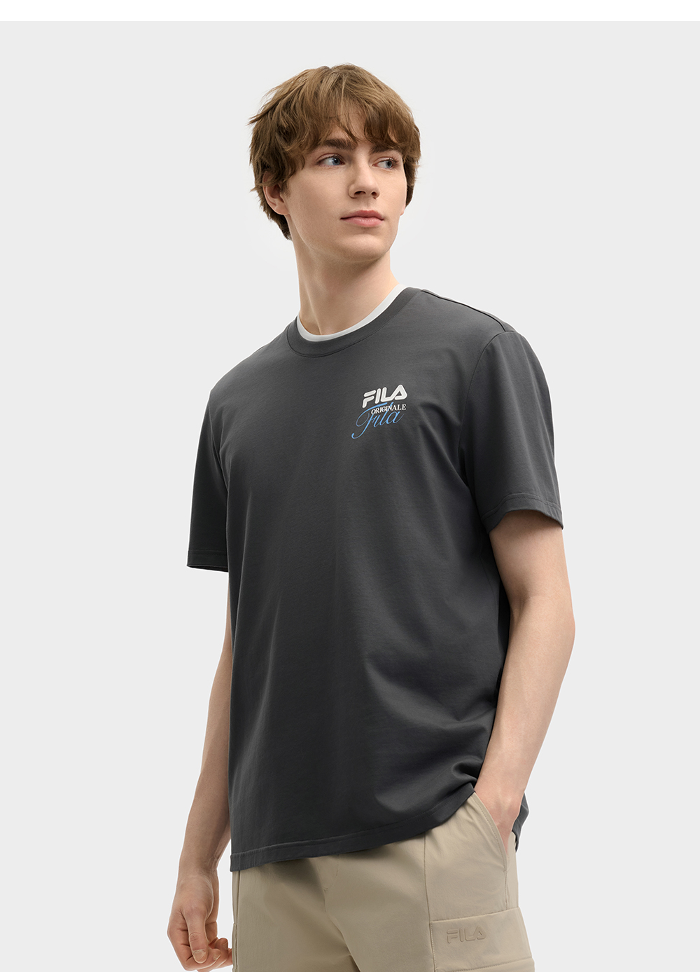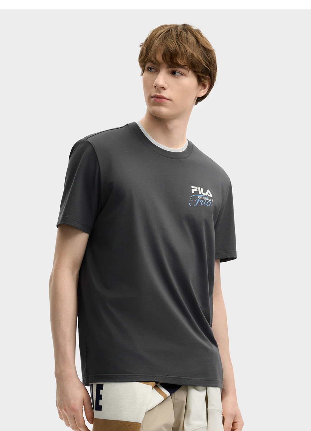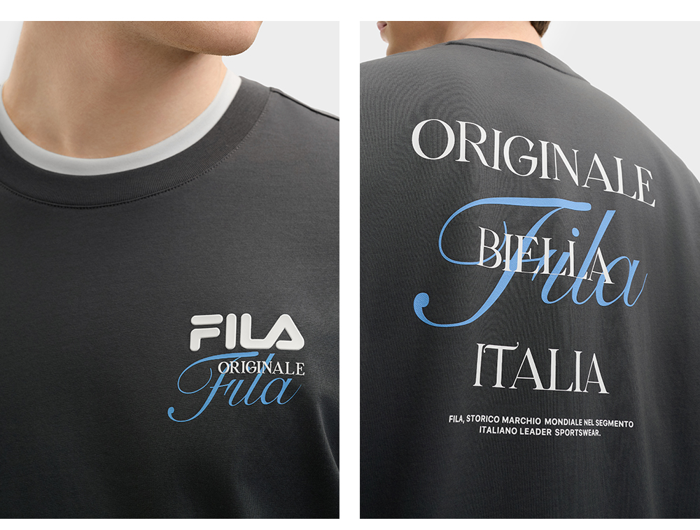Brand: FILA CORE Product: FILA CORE LIFESTYLE ORIGINALE DREAMS ON THE COURT Men Short Sleeves T-Shirt in Grey SKU No. F11M529108FCC Color: Grey Gender: Men This collection’s theme, Dreams on the Court, draws inspiration from the essence of the classic "Old Money" trend, blending it with the current popular MIU-style aesthetic. Infused with FILA’s DNA and bold color-blocking design, it seamlessly fuses sport and fashion to create a dreamlike world on the tennis court—luxurious yet playful sports fashion.