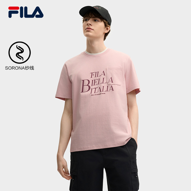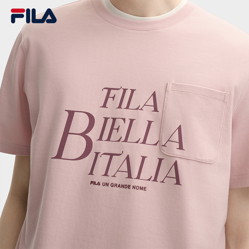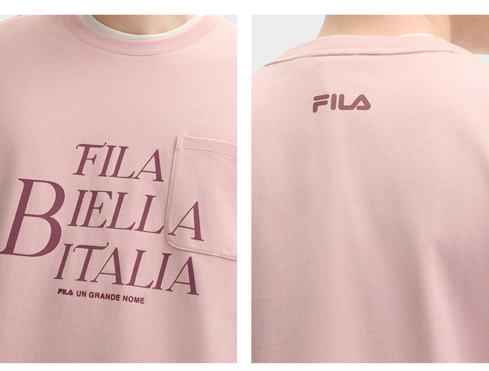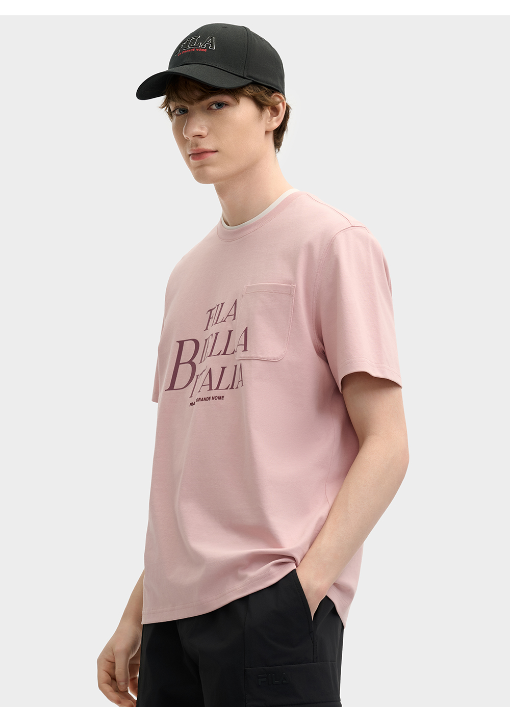 Brand: FILA CORE Product: FILA CORE LIFESTYLE ORIGINALE DREAMS ON THE COURT Men Short Sleeves T-Shirt in Pink SKU No. F11M529116FPK Color: Pink Gender: Men This collection’s theme, Dreams on the Court, draws inspiration from the essence of the classic "Old Money" trend, blending it with the current popular MIU-style aesthetic. Infused with FILA’s DNA and bold color-blocking design, it seamlessly fuses sport and fashion to create a dreamlike world on the tennis court—luxurious yet playful sports fashion.