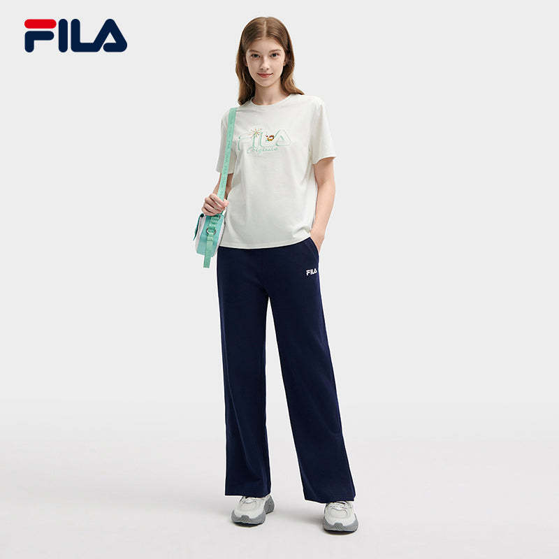 FILA CORE WHITE LINE Women's Knit Wide-Leg Long Pants in Dark Navy