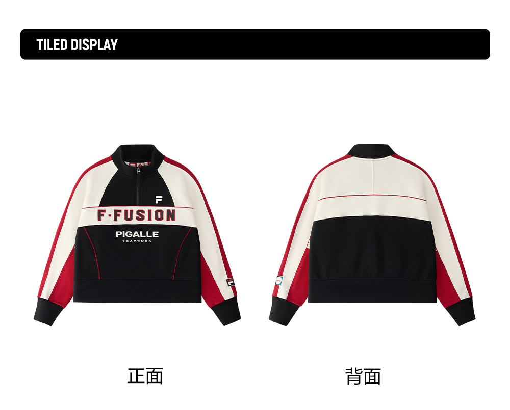 Brand: FILA FUSION Product: FILA FUSION CROSS OVER FILA FUSION X PIGALLE BREAK DUNK Women Long Sleeve Top in Black SKU No. T11W518203FBK Color: Black Gender: Women Fast - Break Dunk is a collection in collaboration between FILA x PIGALLE The collection is a bridge between basketball tradition and urban fashion, presenting a youthful, contemporary interpretation. The use of Grant Hill's legacy as inspiration ties the designs to FILA's basketball heritage, appealing to both sports and streetwear audiences.