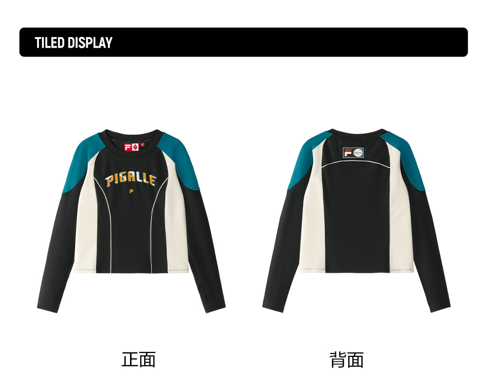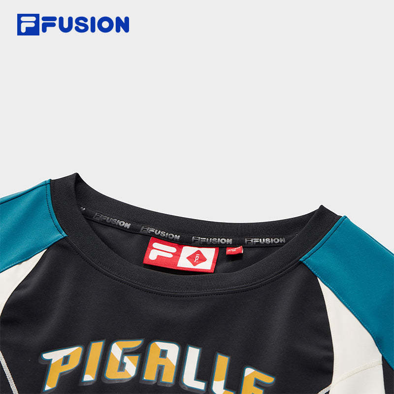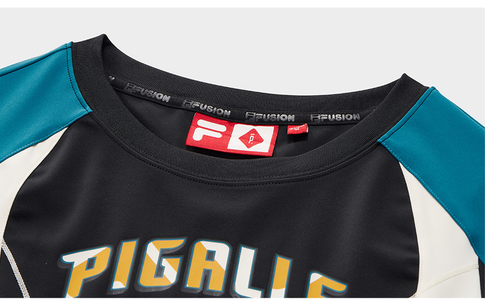 Brand: FILA FUSION Product: FILA FUSION CROSS OVER FILA FUSION X PIGALLE BREAK DUNK Women Sweatshirt in Blue SKU No. T11W518209FBU Color: Blue Gender: Women Fast - Break Dunk is a collection in collaboration between FILA x PIGALLE The collection is a bridge between basketball tradition and urban fashion, presenting a youthful, contemporary interpretation. The use of Grant Hill's legacy as inspiration ties the designs to FILA's basketball heritage, appealing to both sports and streetwear audiences.