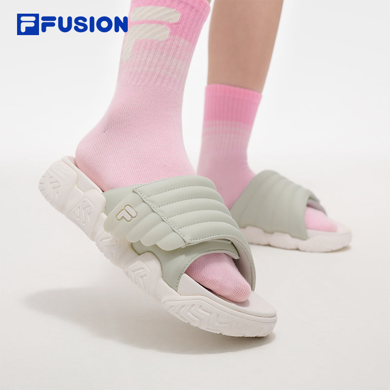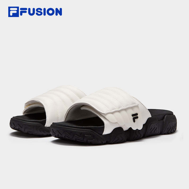 Brand: FILA FUSION Product: FILA FUSION FUSION BARRICADE SLIPPER Women Slippers in White SKU No. T12W521805FAG Color: White Gender: Women Barricade slippers is trendy slide inspired by the FILA classic basketball sneaker BARRICADE. Features a minimalist Velcro strap with a three-dimensional wing-shaped upper design, adding rich visual layers. The adjustable fit accommodates various foot shapes.