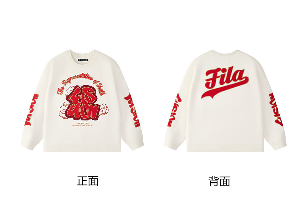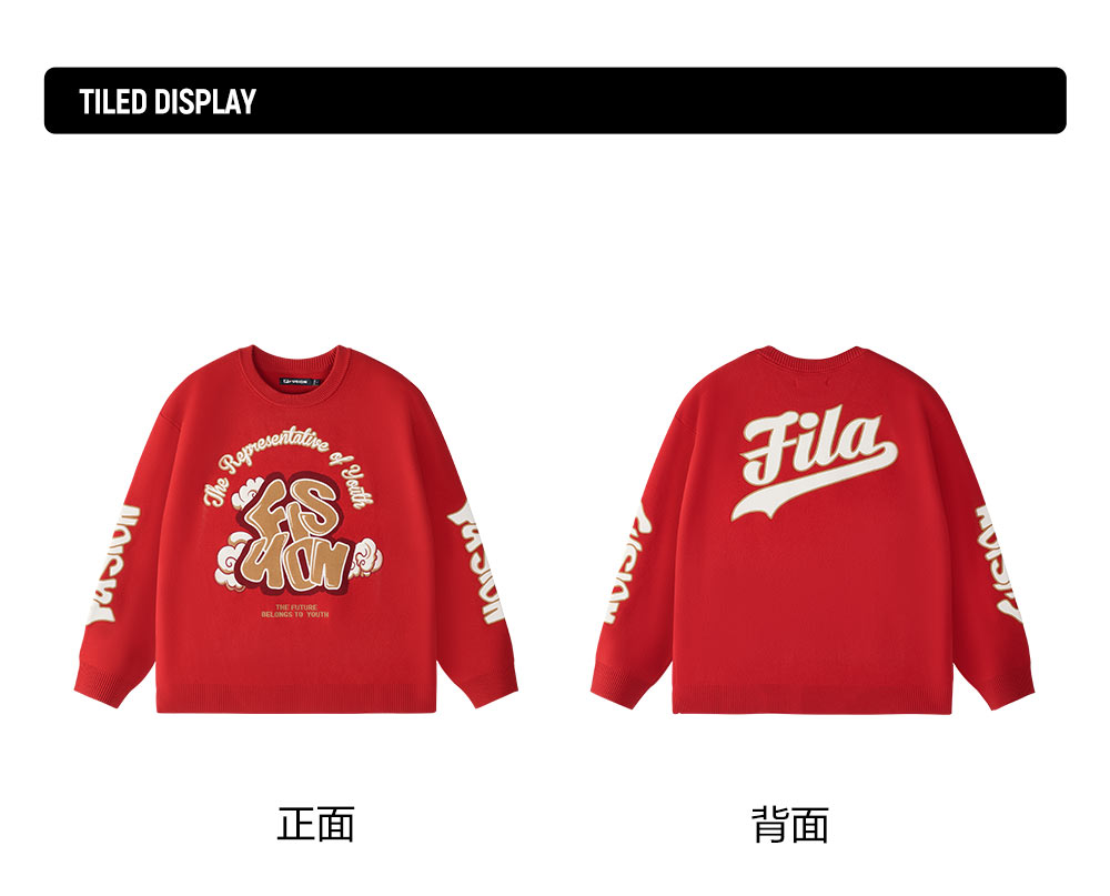 Product: FILA FUSION INLINE CULTURE CNY COLLECTION Unisex Knit Sweater in Red/ White