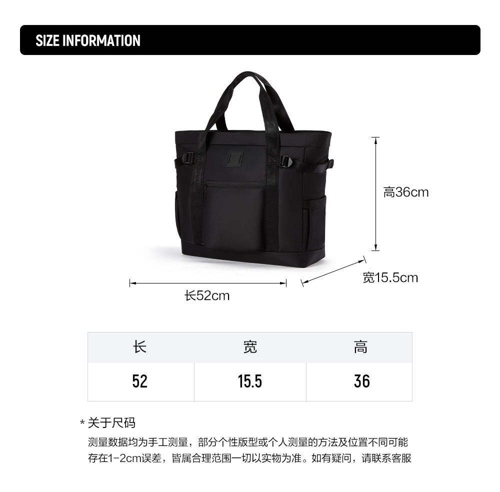 Brand: FILA FUSION Product: FILA FUSION INLINE Unisex HandBag in Black SKU No. T13U443141FBK Color: Black Gender: Unisex This classic Fusion handbag is suitable for anyone and any occasion. It can also act as a laptop bag. Dimensions: 52cm x 15.5cm x 36cm (LxBxH)
