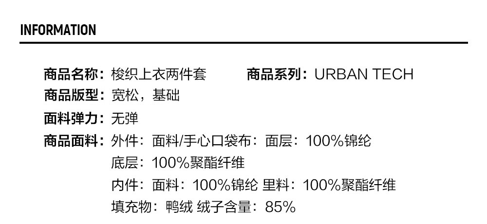 Brand: FUSION Product: FUSION INLINE URBAN TECH TECH-SPHERE URBANITY Men 2 Piece Woven Top in Green SKU No. T11M441905FDG Color: Green Gender: Men FILA Urban Tech-Spehere Urbanity collection is suitable for urban sports and lifestyle wear. The core focus of this collection is of suits, pants and down jackets. This collection takes inspiration from tech-topia > a concept that focuses on the basis of modern technology and creativity. Using advanced technology and functional fabrics and innovative design, was how Tech-Sphere Urbanity collection was created - urban street stle and modern elements while keeping one warm this winter season
