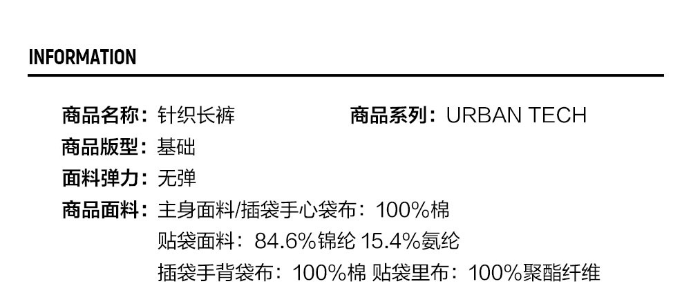 Brand: FILA FUSION Product: FILA FUSION INLINE URBAN TECH THE ART OF THE CITY NATURE Men Knit Pants in Black SKU No. T11M511601FBK Color: Black Gender: Men The Art of the City Nature: Finding the Beauty of Nature in the Urban Landscape. This theme revolves around people seeking to escape urban life by discovering scattered fragments of nature within the city. City Hiker explores natural landscapes in urban settings, including parks, city forests, riversides, green spaces, and urban hiking routes connected to national parks. The collection harmonizes tech elements with urban nature, blending functionality with style. It reflects the colors and patterns of nature while utilizing eco-friendly, functional materials. The defining feature of this story is the rediscovery of nature within the city. It fuses the beauty of nature and art with urban surroundings, enhancing the functional creativity of the cityscape.