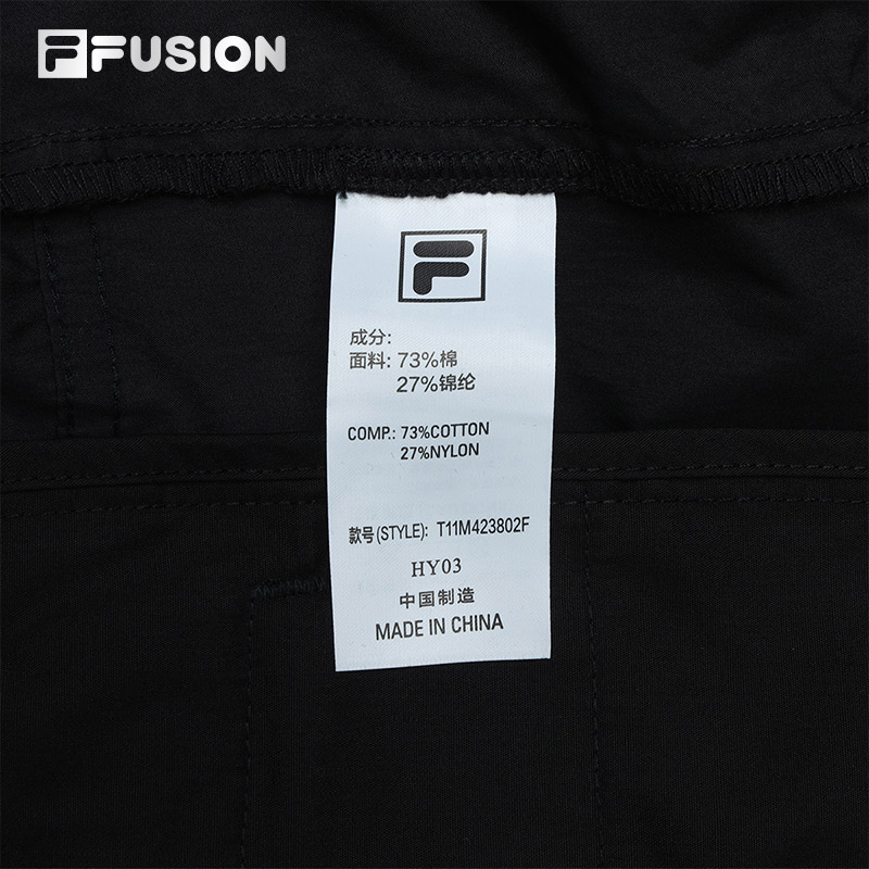 Brand: FILA FUSION Product: FILA FUSION INLINE WORKWEAR Men Woven Pants in Black SKU No. T11M423802FBK Color: Black Gender: Men Lightweight, breathable trousers for occasional activities, freedom of movement, Stretch fabric and preformed knees. Lightweight synthetic fabric that wicks the perspiration away from the body